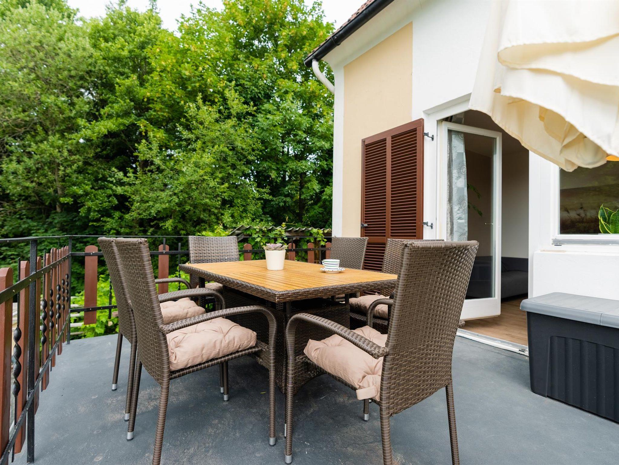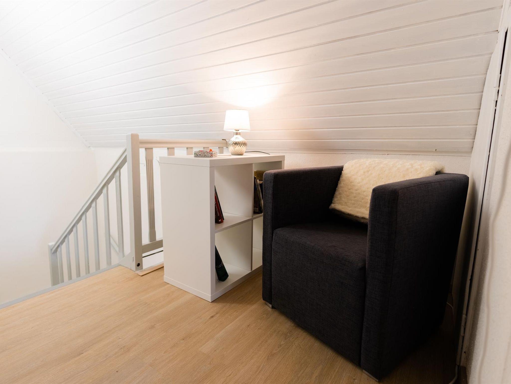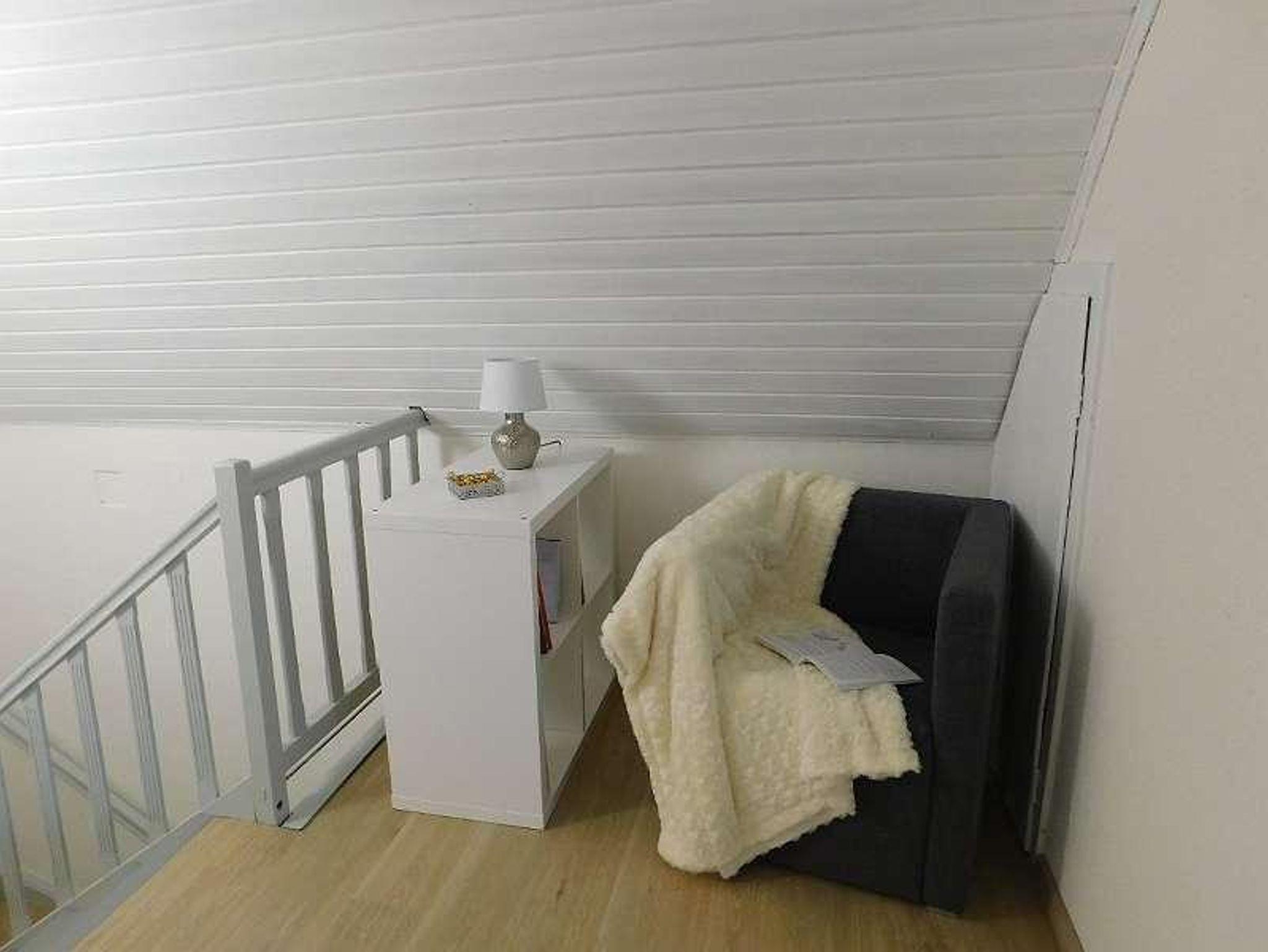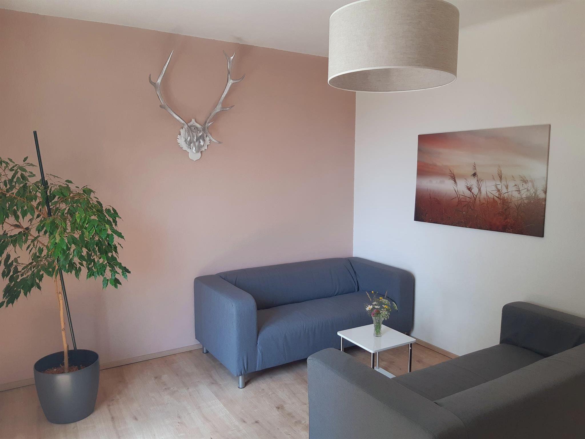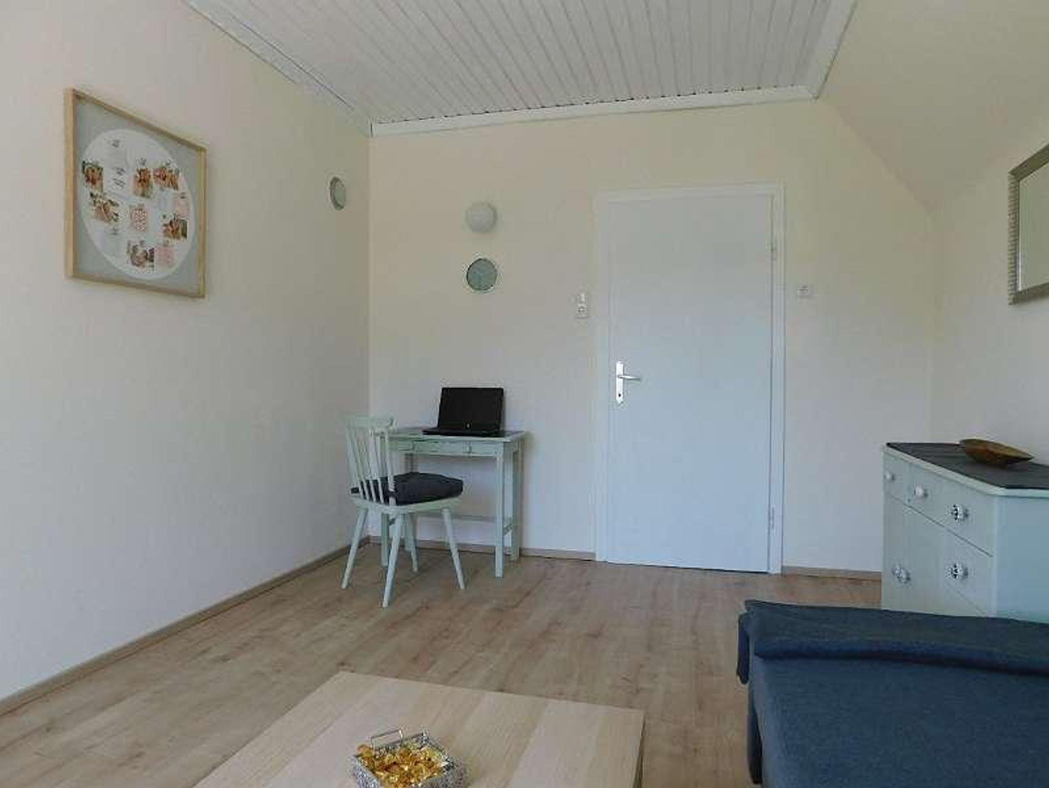 • Wohnbereich mit Schlafcouch (140 x 200 cm) und Schreibtisch, sowie Zugang auf den Balkon