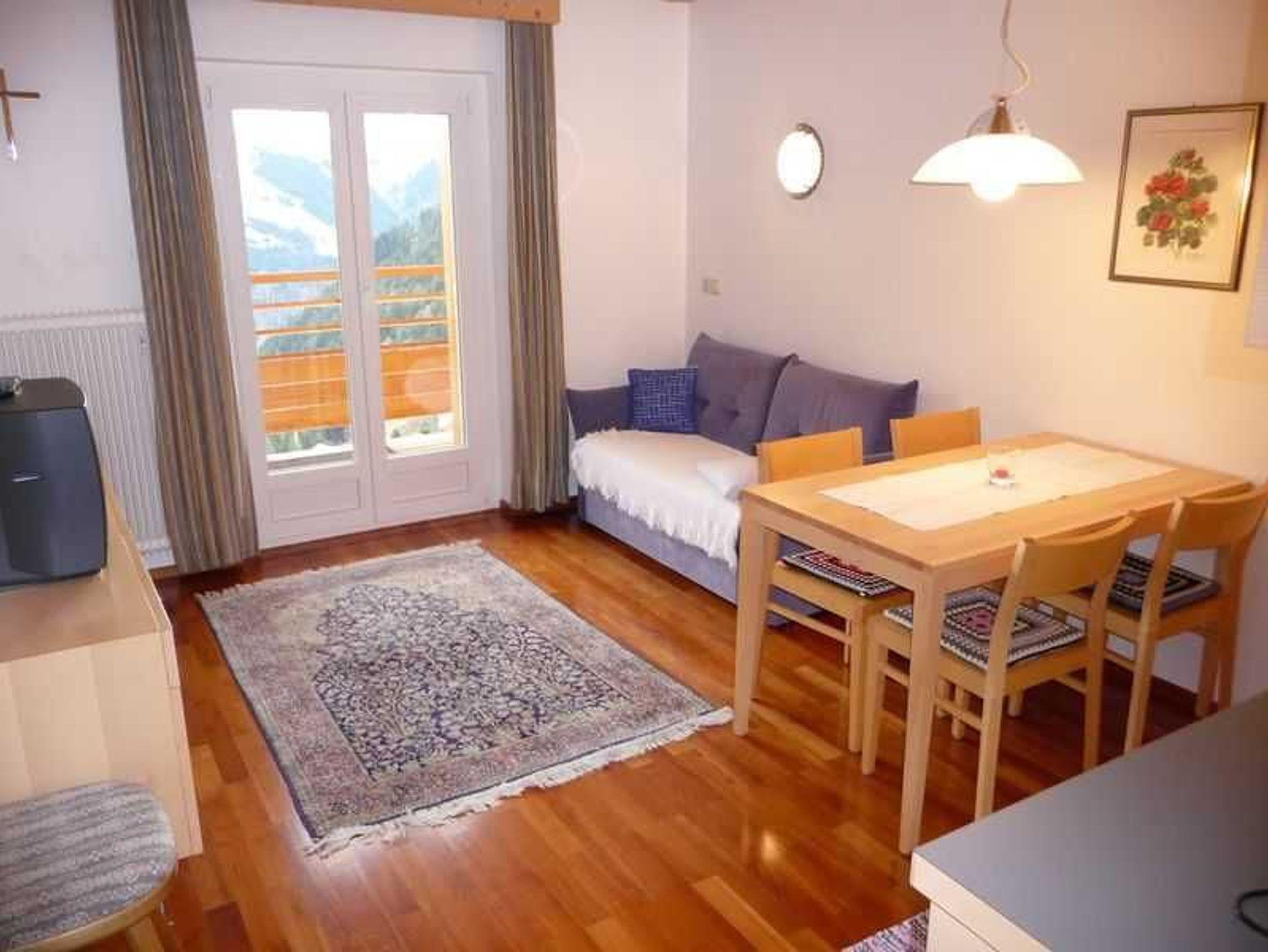 Komfortabel eingerichtetes Appartement mit vollwertiger Wohnküche, separatem Schlafzimmer für zwei Personen, mit Blick auf die umliegenden Berge. Bei Bedarf kann ein Zwei-Bettzimmer für Kinder zugemietet werden.