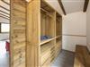 Die Einrichtungsgegenstände und Möbel wie z.B. Eckbank, Esstisch, Garderobe, Türen usw. sind in unseren Almdorf Auszeit Fageralm Premium Chalets aus über 100 Jahre altem recyceltem Teak Holz!