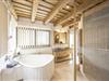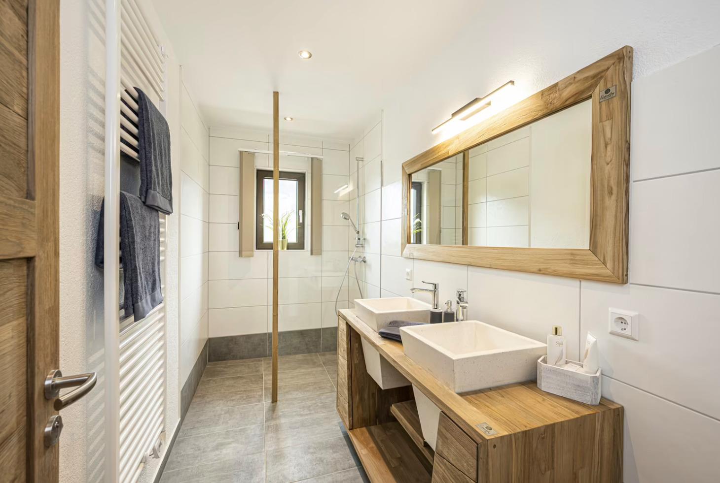 Nach einem erlebnisreichen Urlaubstag finden die Gäste im Wellnessbadezimmer die nötige Erholung. Aus der Sauna bietet sich ebenfalls ein toller Blick auf die Berge Österreichs. Die Sauna kann als klassische finnische Sauna genutzt werden oder auch als Bio-Sauna. Eine Wellness-Dusche (Regendusche) und eine große Eck-Badewanne sind auch vorhanden.