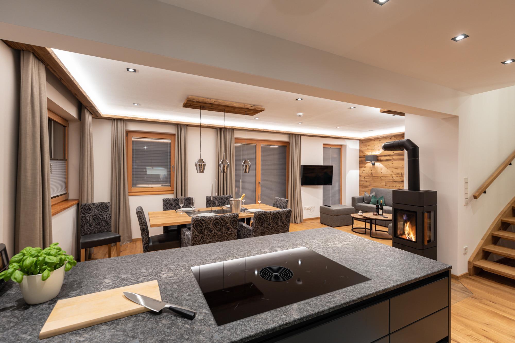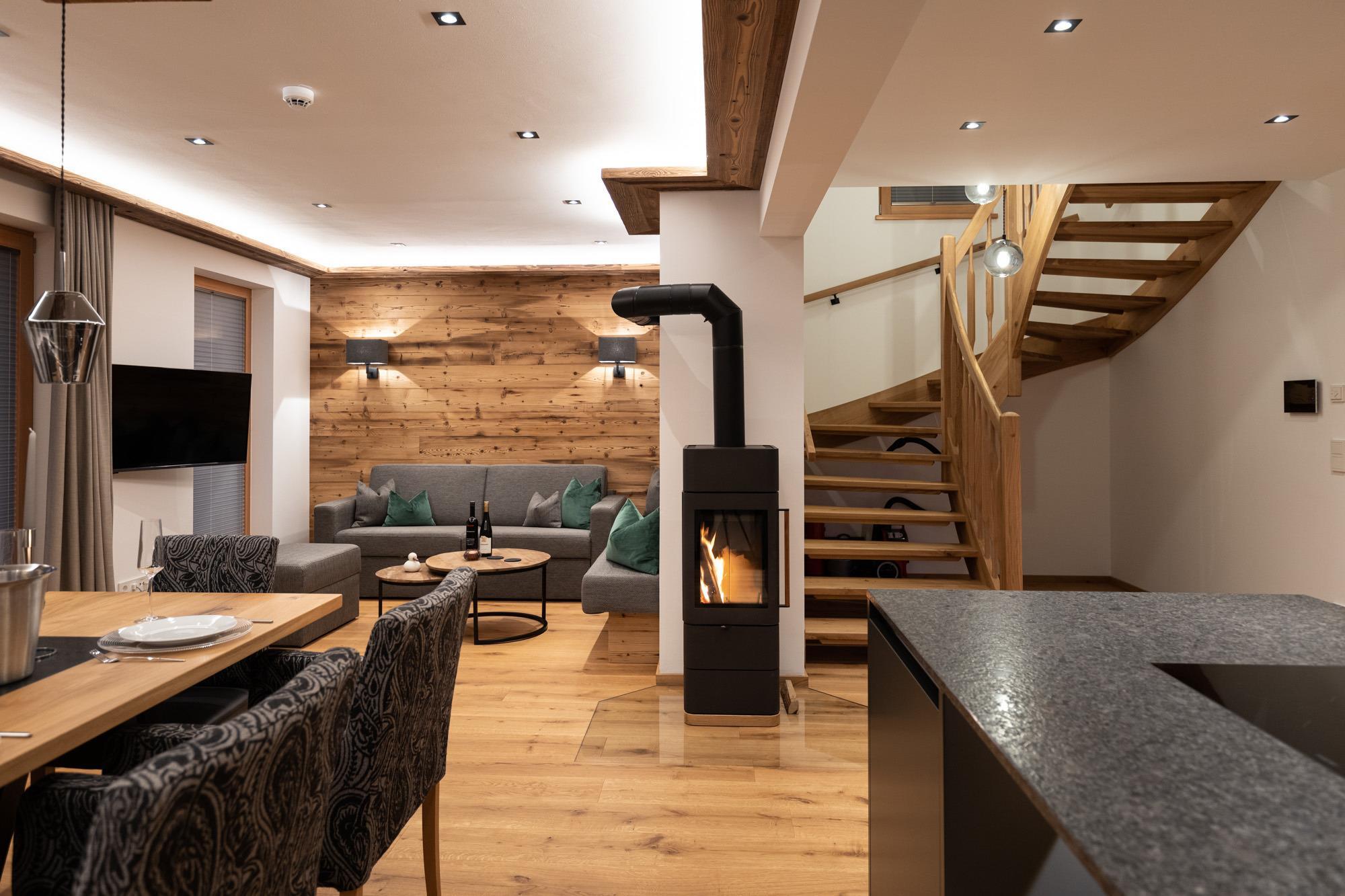 Genießen Sie Komfort und Gemütlichkeit auf höchstem Niveau: Ein Flachbild-TV sorgt für Unterhaltung, während Sie auf dem Balkon frische Bergluft und entspannte Stunden mit Blick auf die Alpen genießen.
