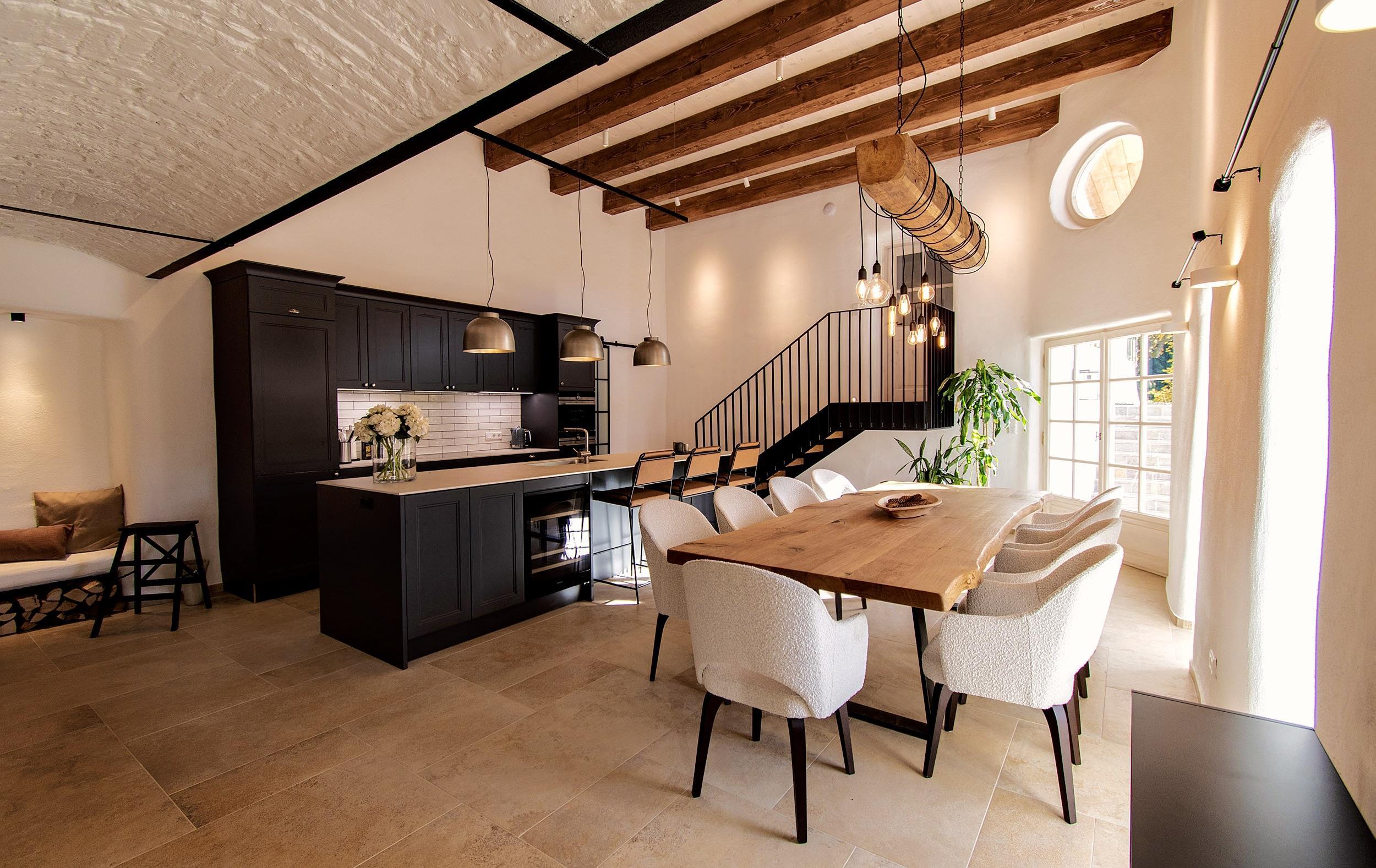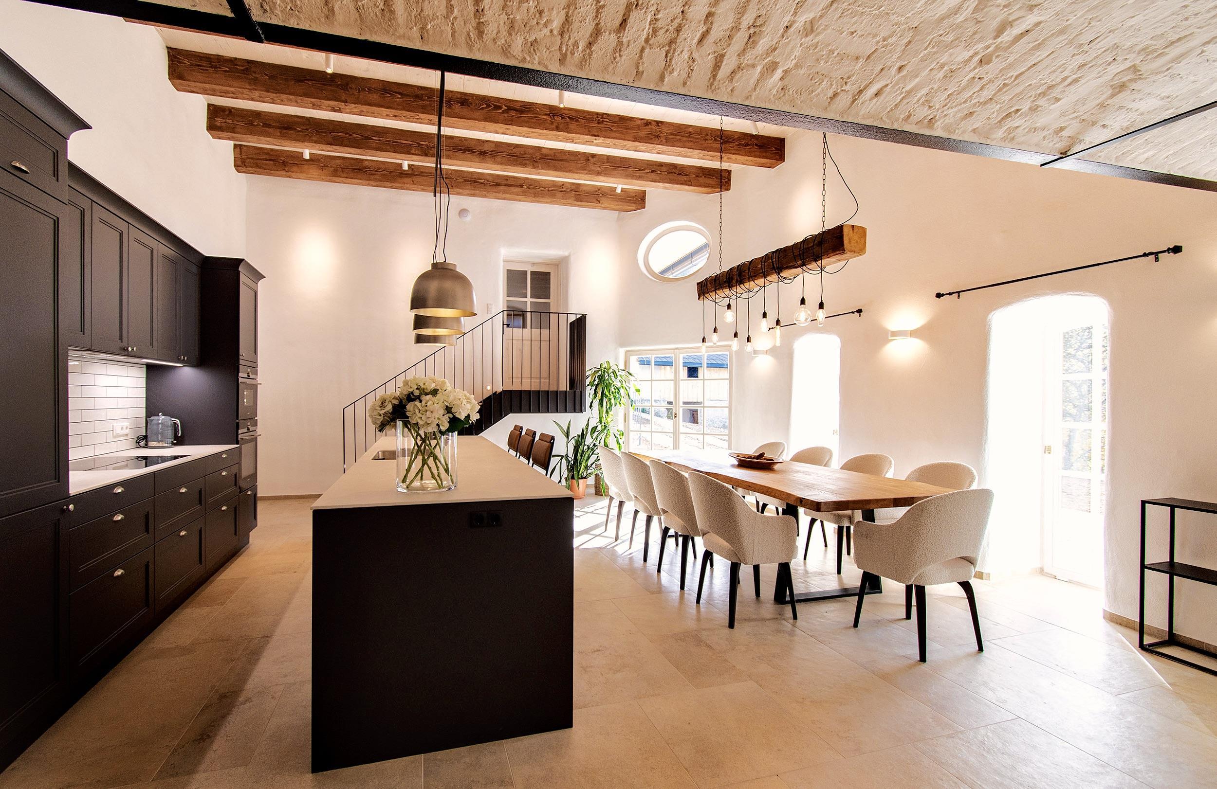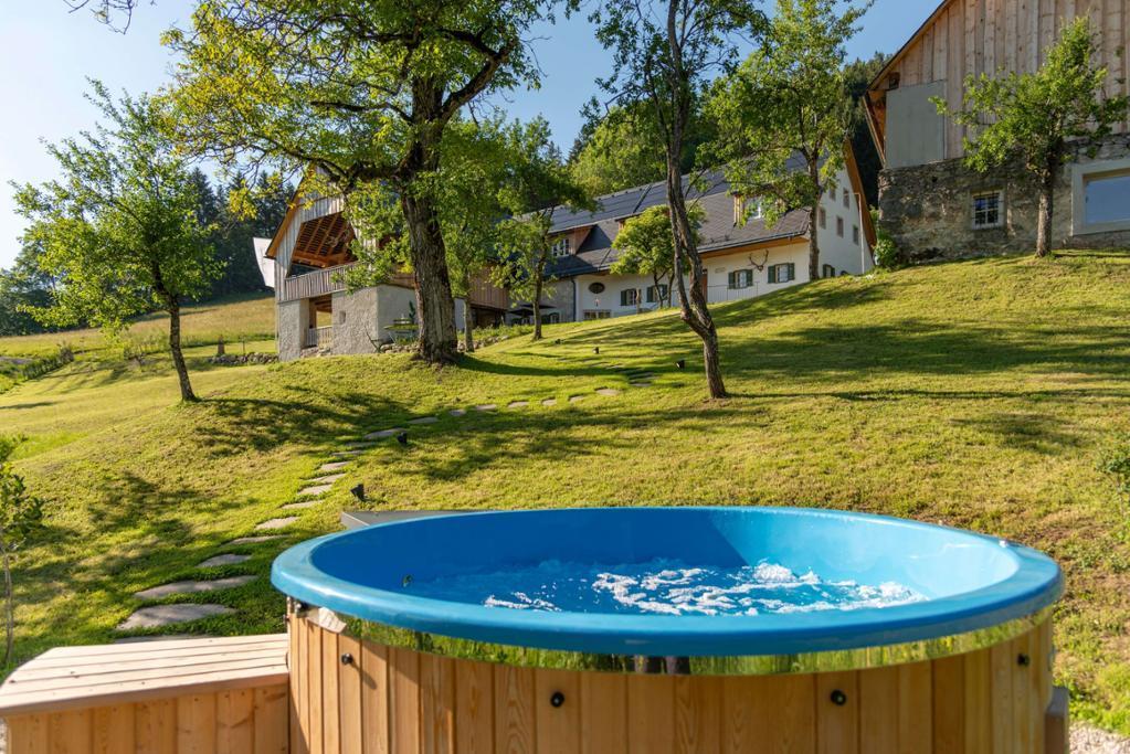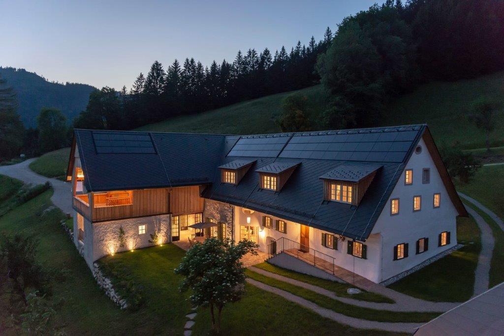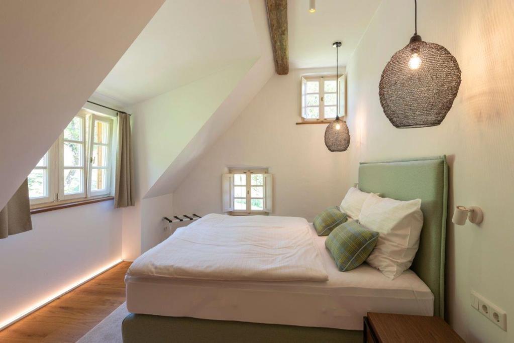 Eingebettet in eine traumhaft idyllische Naturkulisse bietet Ihnen das Ferienhaus 5 komfortable Schlafzimmer (3 Doppelbett- und 1 Zweitbettzimmer, sowie 1 Einzelzimmer mit einem Bett zum Ausziehen), 4 geschmackvolle Badezimmer, eine großzügige Wohn-Ess-Küche, eine gemütliche Bauernstube, einen Weinkeller, einen Holzstadl mit Sonnenterrasse, eine Sauna mit Panoramafenster und ein Outdoor-Holzbadefass mit Dusche.