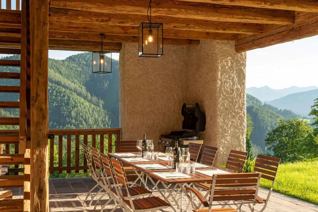 Traumhaft idyllisches Hideaway auf 850 Meter Seehöhe für ein paar Tage Auszeit mit der Familie oder Freunden, als auch Location für Teambuldings, C-Level-/Management Treffen, Hochzeiten oder andere höchst individuelle Events.Momente purer Entspannung lassen sich auf einer der Sonnenterrassen, in der Panoramasauna, sowie im rustikalen Holzbadebadefass unter freiem Himmel genießen. Zum geselligen Beisammensein laden die urige Stube, die großzügige Wohn-Ess-Küche, der überdachte Grillplatz und der Holzstadl ein.