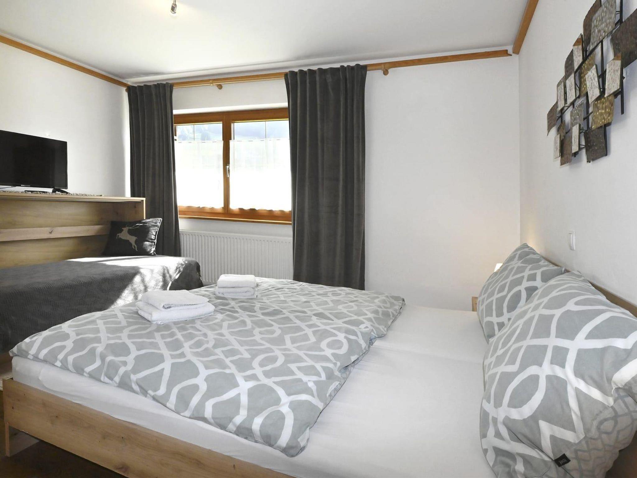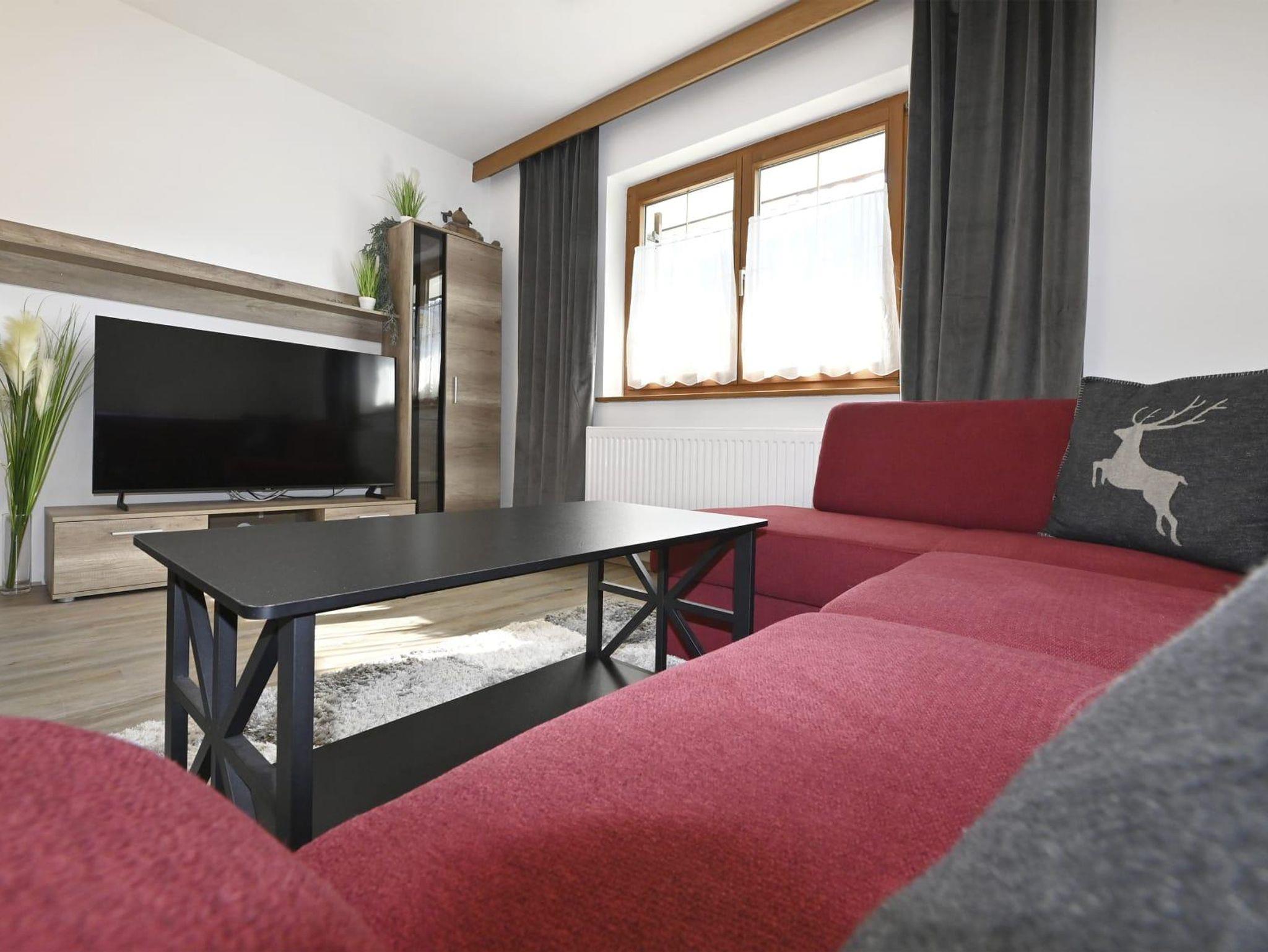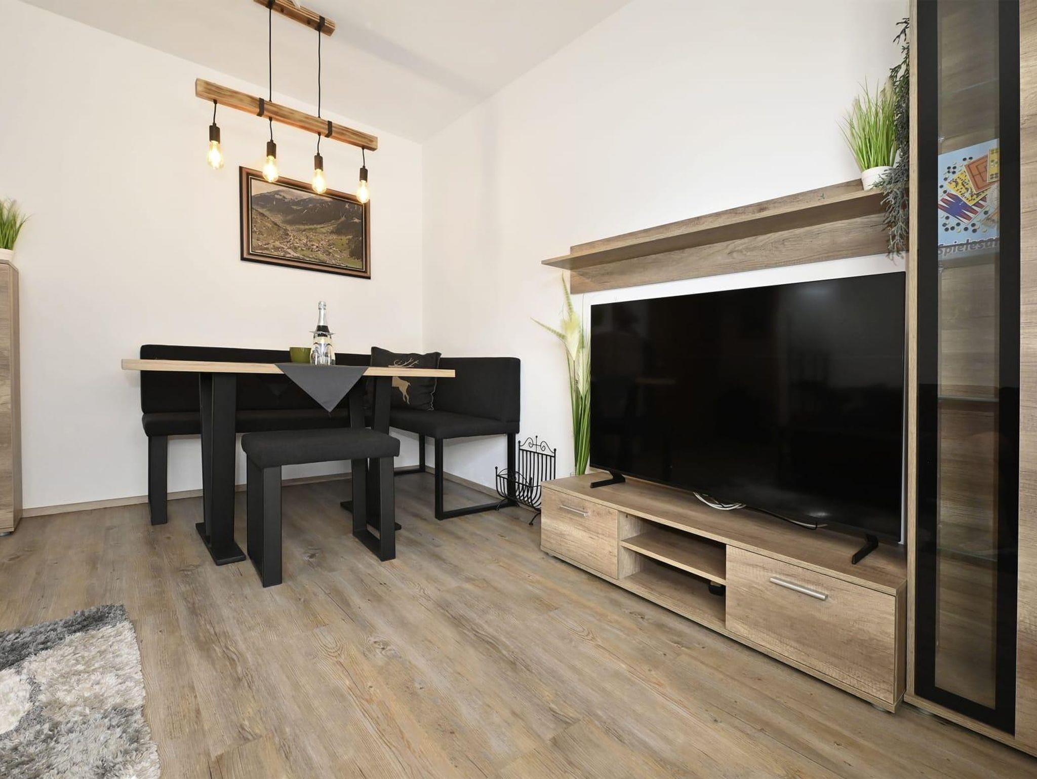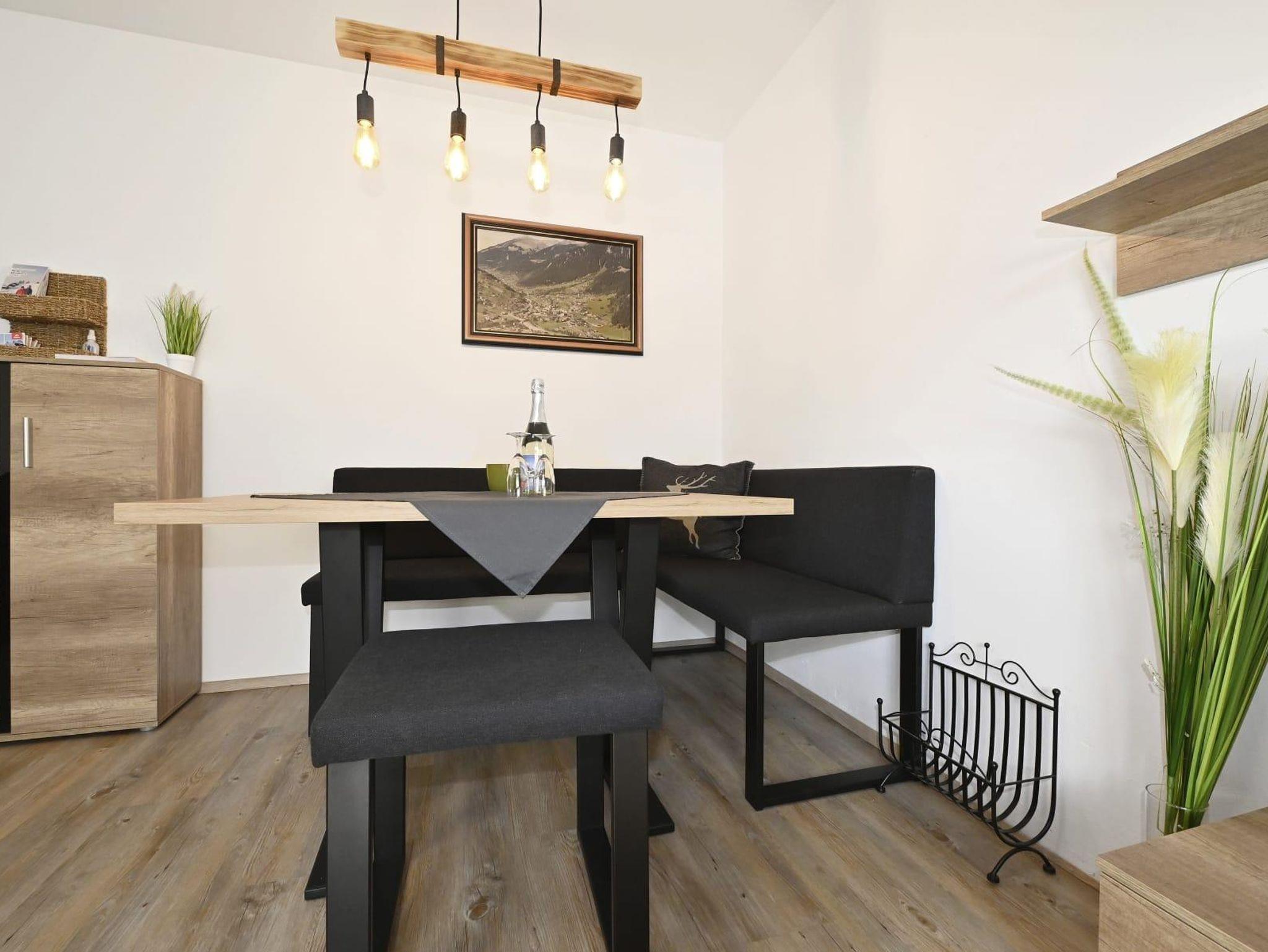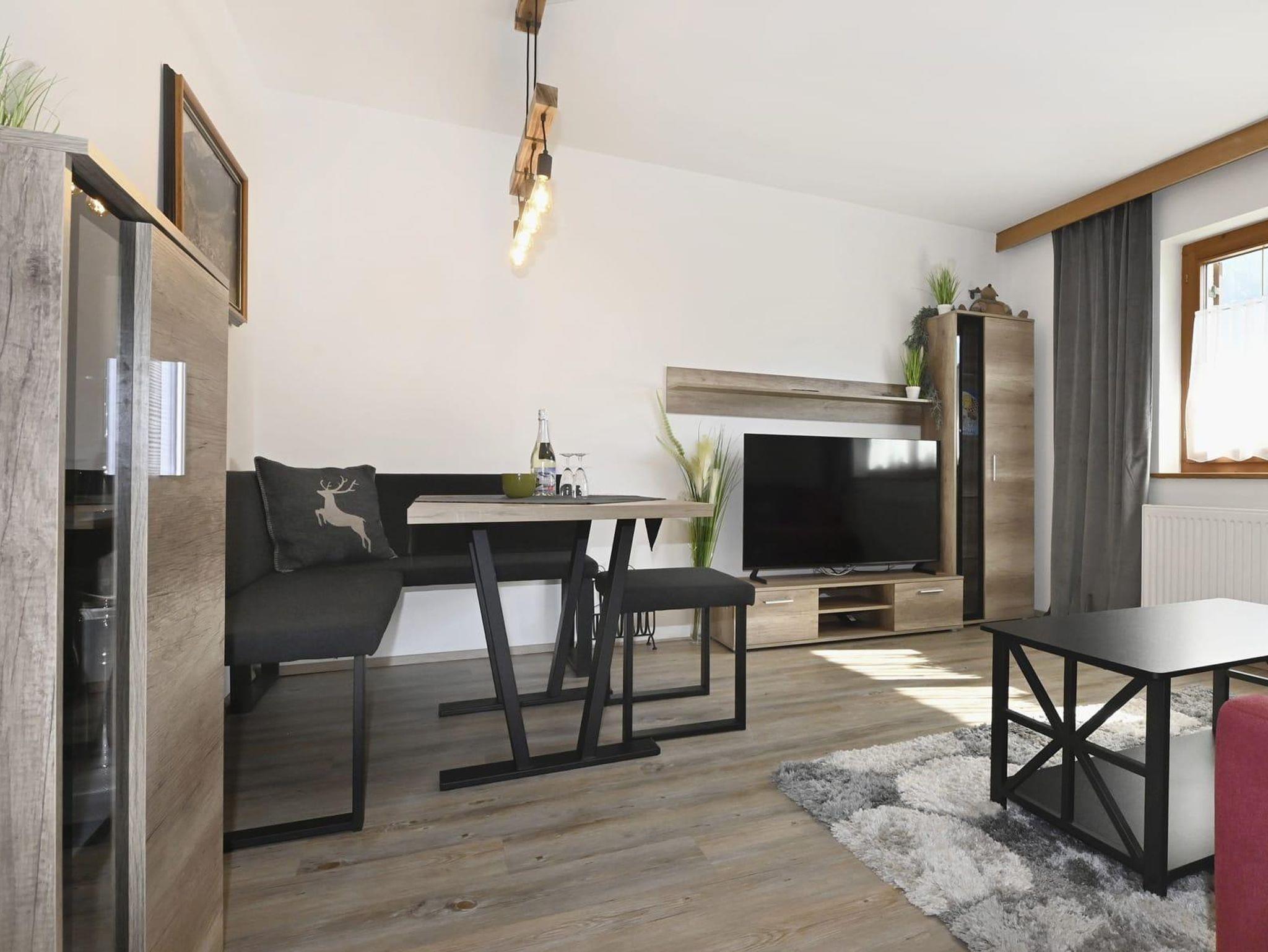 Die Ferienwohnung ist ausgestattet mit einem Schlafzimmer mit Doppelbett und einem Klappbett, Badezimmer mit Dusche und WC, Wohn- Esszimmer mit Ausziehcouch 120cm auf 200cm und einer Küche. Die Küche ist komplett ausgestattet mit einem Geschirrspüler, Kühlschrank, Vierplattenherd und Backrohr, Mikrowelle und Kaffeemaschine.