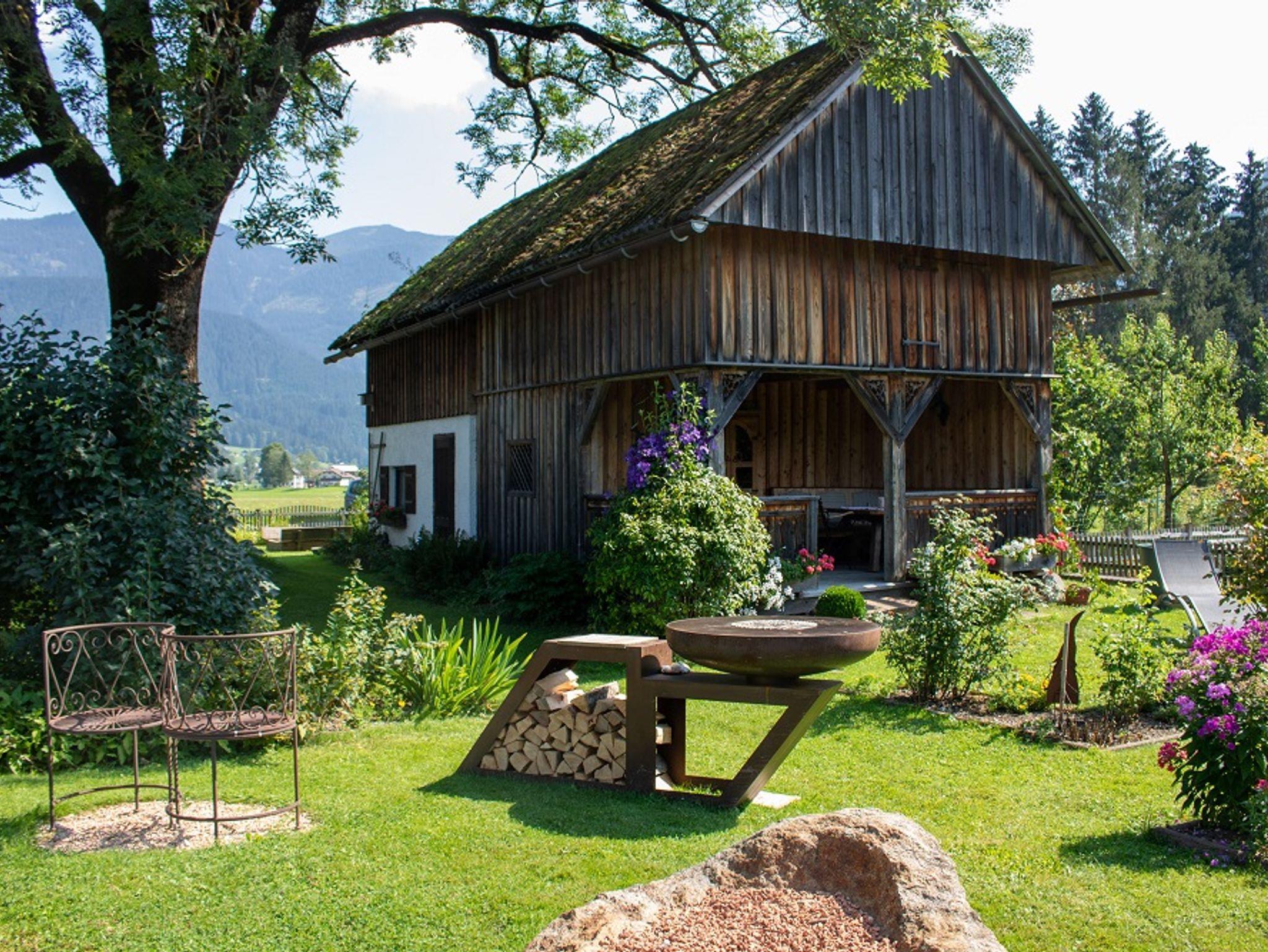 Die Ferienwohnung Laserer bietet neben seinen zwei Apartments mit Küche auch noch einen überdachten outdoor Swimmingpool und ein Salettl inmitten von grünen Bäumen und dem einzigartigen Blick auf das Gosaukammmassiv.