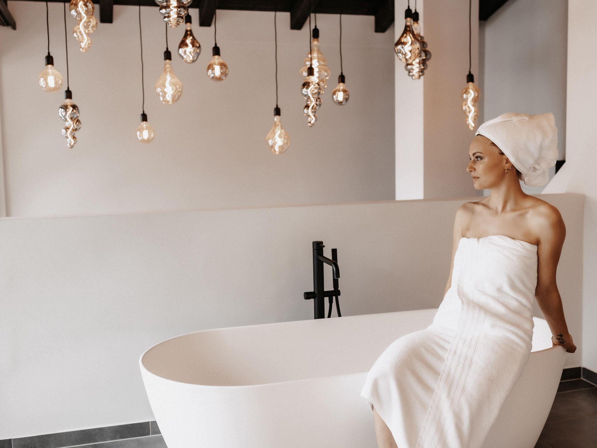 Auf 3 Stockwerken verteilt stehen drei Schlafzimmer inklusive privatem Badezimmer zur Verfügung. Im Doppelzimmer im UG bietet sich ein beeindruckender Blick durch die große Glasfront, die anderen Schlafzimmer sind direkt bei Wellness- und Wohnbereich. Wir achten auf Naturmaterialien und Details, der Designerholzkamin im Wohnbereich ist ein besonderes Highlight.