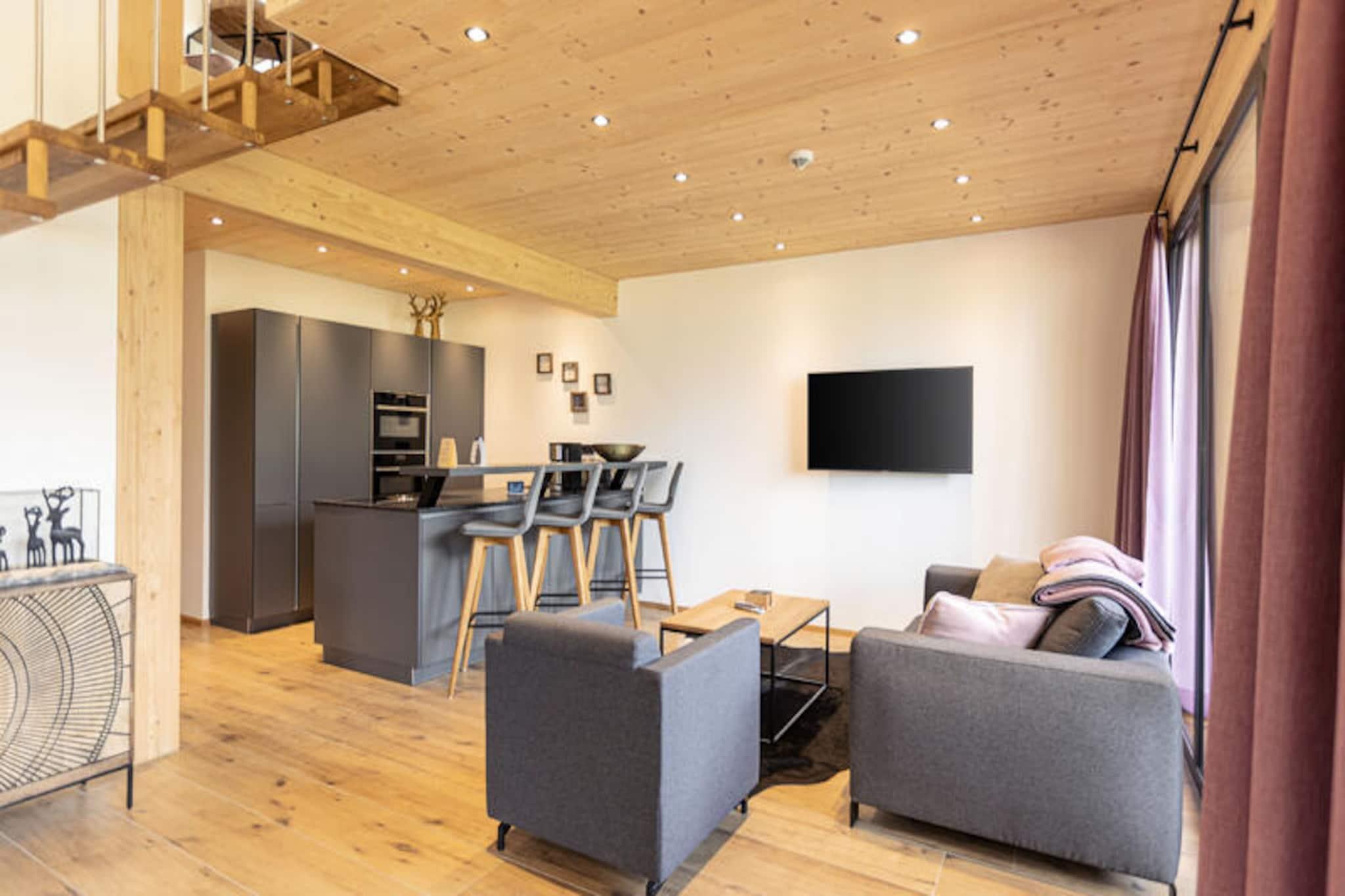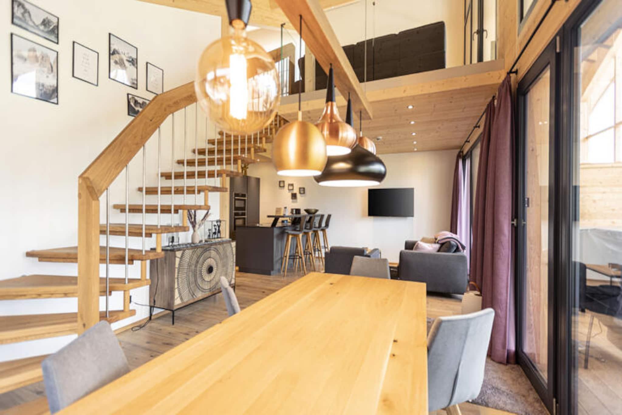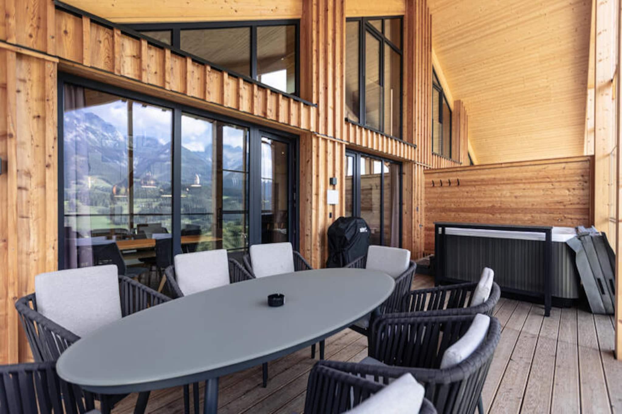 Wo die majestätischen Dachsteinberge das Tal umschließen, bietet dieses elegante Alpenapartment den perfekten Rückzugsort für Familien und Freunde. Mit seinem modernen Design und dem warmen Ambiente lädt die Unterkunft dazu ein, in die Schönheit des österreichischen Alpencharmes einzutauchen. Stellen Sie sich vor, Sie wachen mit dem friedlichen Blick auf schneebedeckte Gipfel auf und stehen nur 250 Meter von Ihrer Tür entfernt auf den Pisten. Ob Winterabenteuer oder Sommerwanderungen – dieser Ort verspricht unvergessliche Momente in der Natur. \n\nDas 120 m² große Apartment bietet bequem Platz für bis zu sechs Gäste in drei geschmackvoll eingerichteten Schlafzimmern. Der offene Wohnbereich ist lichtdurchflutet und lädt nach einem erlebnisreichen Tag zum Entspannen ein. Die Küche im amerikanischen Stil ist mit modernen Geräten ausgestattet und ermöglicht die einfache Zubereitung köstlicher Mahlzeiten. Genießen Sie den Luxus einer privaten Sauna und eines Whirlpools – perfekt zum Entspannen und Erholen. Terrasse und Balkon bieten den idealen Platz, um den Panoramablick auf die Berge bei einer Tasse Kaffee am Morgen oder einem Glas Wein am Abend zu genießen.\n\nAm Fuße der Skipisten von Hauser Kaibling gelegen, ist die Unterkunft ein Paradies für Skibegeisterte. Im Sommer locken die saftig grünen Wege Wanderer und Radfahrer gleichermaßen an. Das charmante Städtchen Haus im Ennstal mit seinen Restaurants, Geschäften und einladender Alpenatmosphäre ist nur 2 km entfernt. Zu den nahegelegenen Attraktionen zählen der Golfplatz GC Schladming Dachstein, der Badesee Pichl und die Erlebnistherme Amade für Familienspaß. Auch der Flughafen Salzburg und der beeindruckende Nationalpark Berchtesgaden sind für Tagesausflüge gut erreichbar.\n\nOb Sie aufregende Outdoor-Aktivitäten oder ruhige Momente inmitten der Natur suchen – diese alpine Oase bietet die perfekte Balance zwischen Komfort und Abenteuer. Lassen Sie sich von den atemberaubenden Landschaften und den durchdachten Annehmlichkeiten verzaubern und Ihren Aufenthalt zu einem unvergesslichen Erlebnis machen.