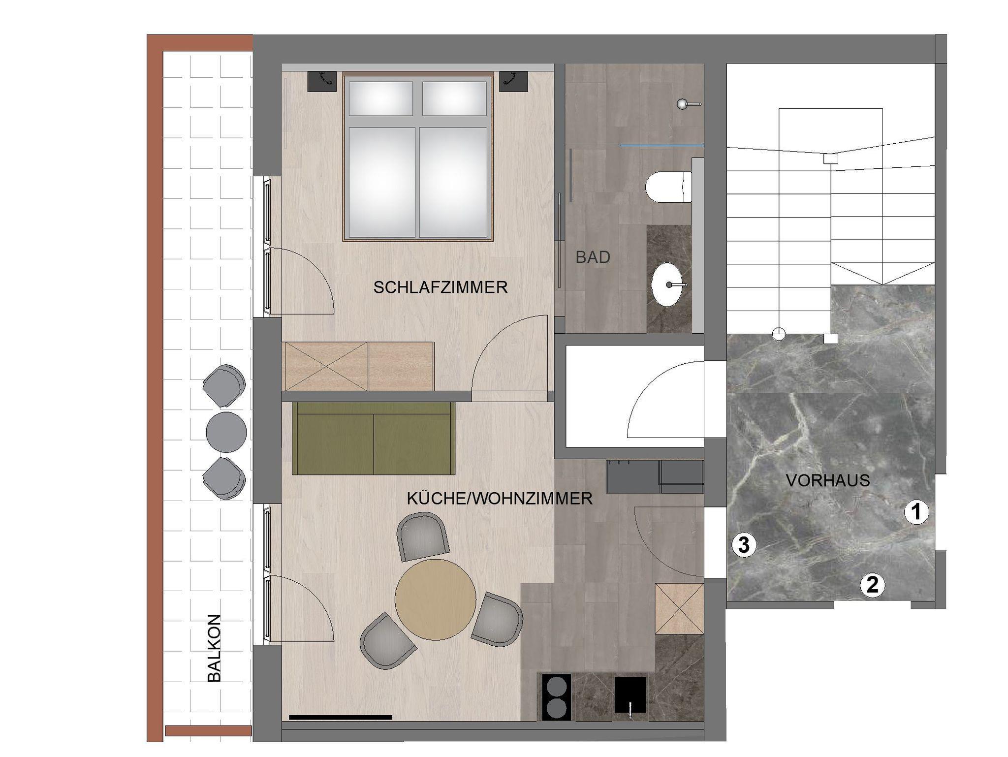 HAUSZEIT APPARTEMENTS, APPARTEMENT 3 - 1 Schlafraum, Dusche, WC