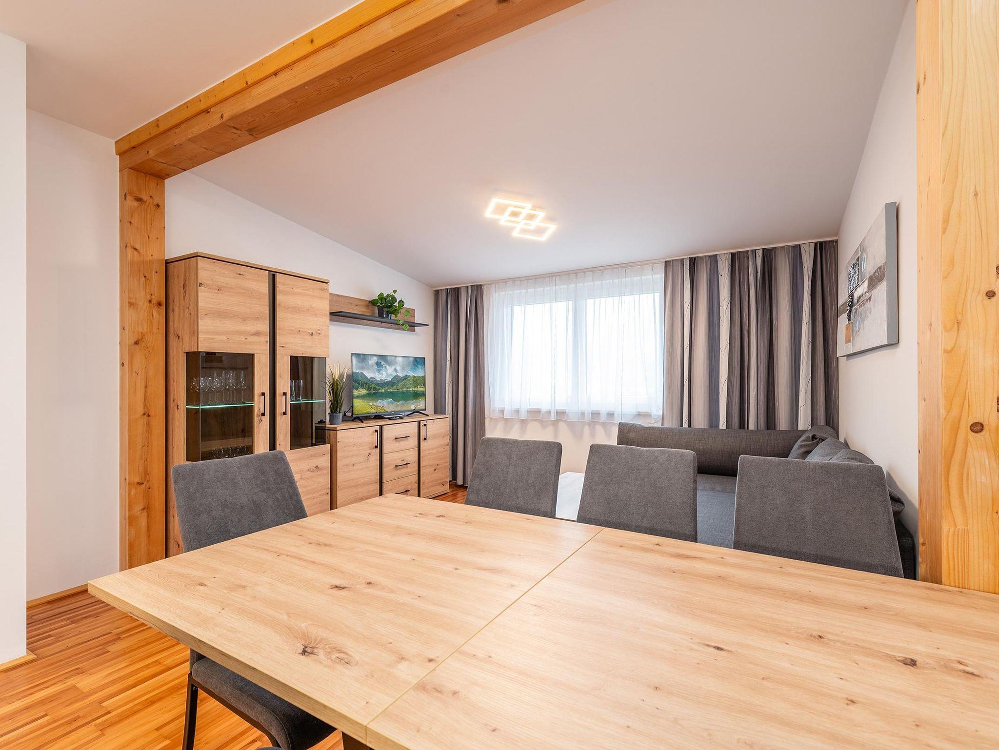 2 Schlafzimmer mit je einem Doppelbett sowie eine Schlafcouch für 2 weitere Personen im Wohnzimmer bieten insgesamt Platz für 6 Personen. Die voll ausgestattete Küche lädt zum gemeinsamen Kochen ein. Ein modernes Badezimmer mit Dusche sowie ein separates WC sorgen für zusätzlichen Komfort. Kostenfreie Parkmöglichkeiten stehen direkt beim Apartment zur Verfügung.