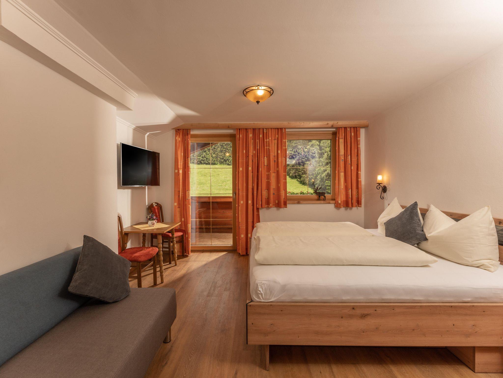 Appartement E - Zwei herrliche Aussichtsbalkone in wohltuender Ruhelage, zwei getrennte Schlafzimmer (optional weiteres Schlafzimmer mit eigenem Bad zubuchbar), Elternschlafzimmer mit zusätzlicher Schlafcouch, Wohnküche, Badezimmer und WC getrennt, Fernseher in beiden Zimmern und in der Küche sowie W-LAN. Ideal für bis zu fünf Gäste.