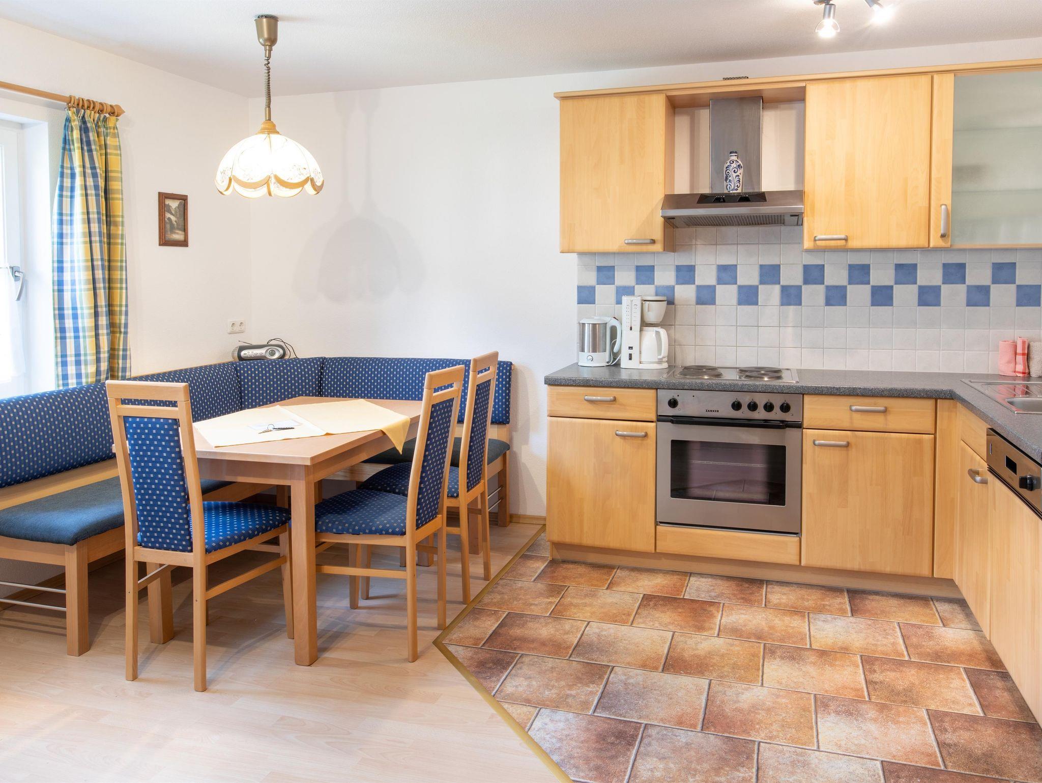 1.) Apartment Maria liegt im Erdgeschoss und verfügt über 2 getrennte Doppelzimmer, Wohnküche mit Schlafcouch und Sat-TV, Bad mit WC und ein WC separat sowie eine Terrasse, die direkt in den Garten führt.