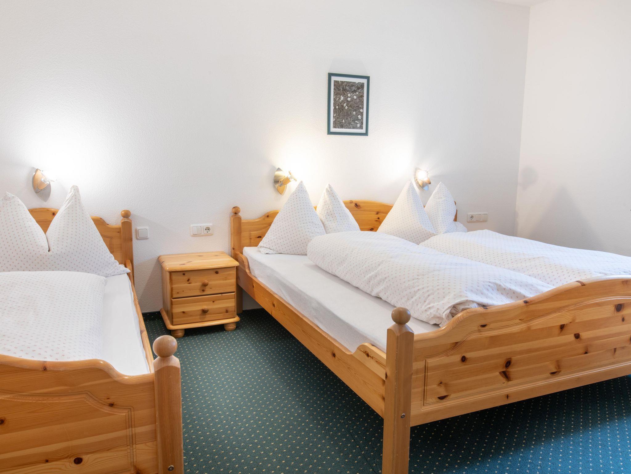 Unser Appartement bietet 1 Doppel- und 1 Dreibettzimmer (jeweils mit Sat-TV), eine Wohnküche mit Schlafcouch und Sat-TV sowie Bad mit WC und ein WC separat. Eigener Balkon auf die Süd- und Nordseite. Im gesamten Appartementhaus haben Sie gratis W-Lan.