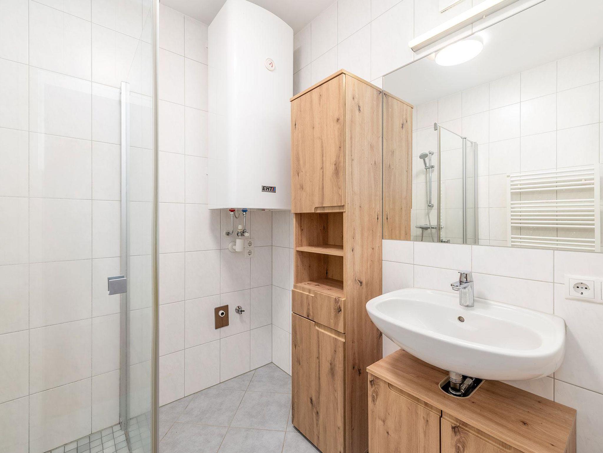 Das Apartment befindet sich im Erdgeschoss und verfügt über ein Schlafzimmer mit einem komfortablen 180 cm Doppelbett sowie einem praktischen Etagenbett. Im Wohnbereich bietet eine gemütliche Schlafcouch zusätzlichen Schlafplatz. Die voll ausgestattete Küche lädt zu gemeinsamen Mahlzeiten ein, während die private Terrasse ein wunderbarer Ort für entspanntes Frühstücken oder gemütliche Abende im Freien ist.