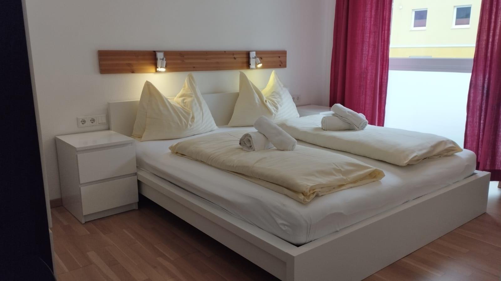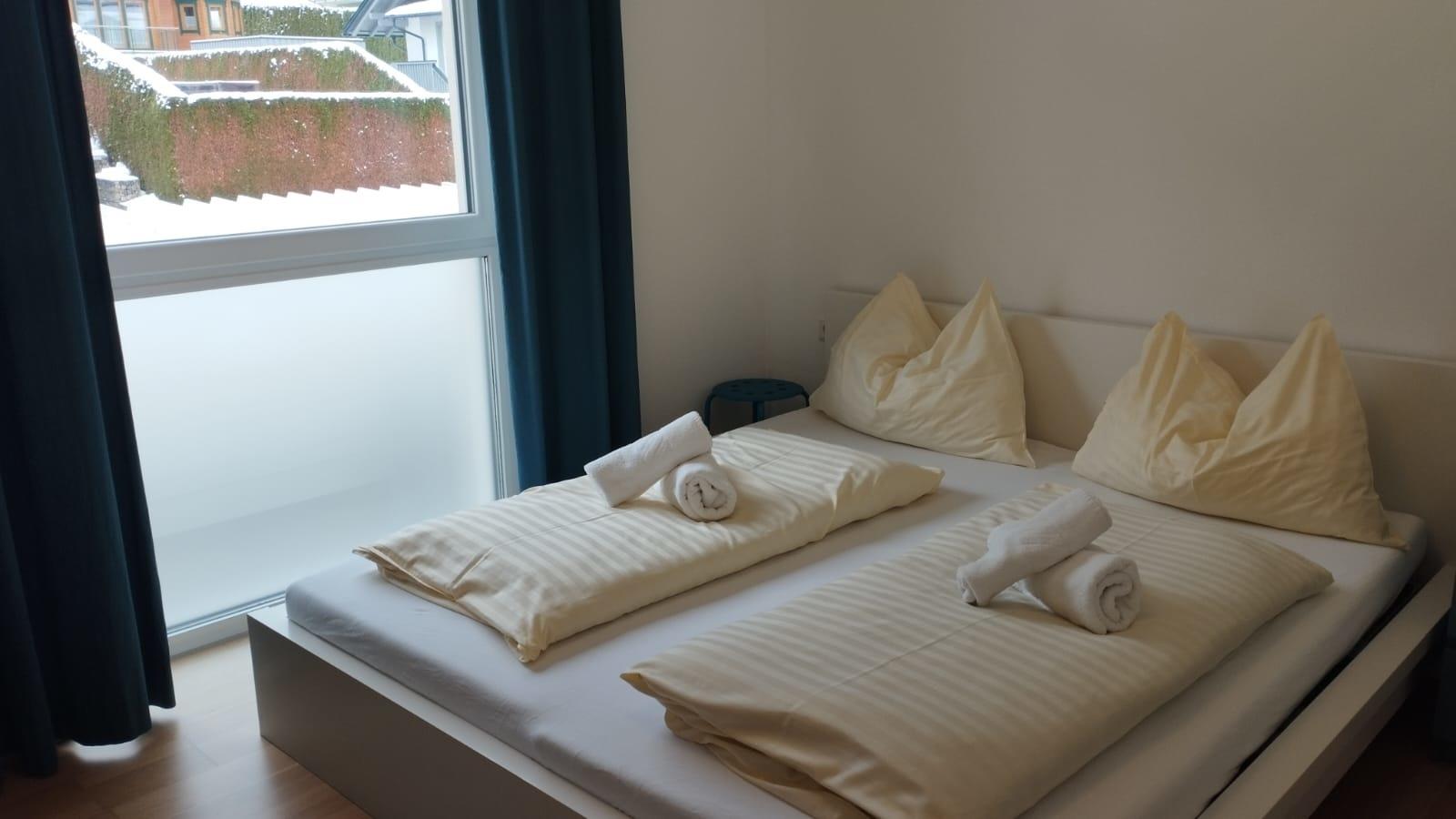 Die Wohnung bietet einen großzügigen Koch-, Wohn- und Essbereich mit traumhaftem Blick auf die umliegende Bergwelt. Zwei Schlafzimmer und eine große ausziehbare Couch bieten ausreichend Platz für alle Gäste. Ein Badezimmer sowie ein separates WC sorgen für zusätzlichen Komfort.