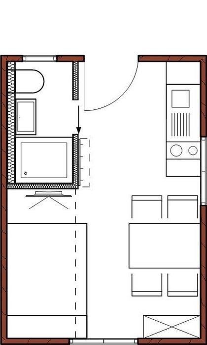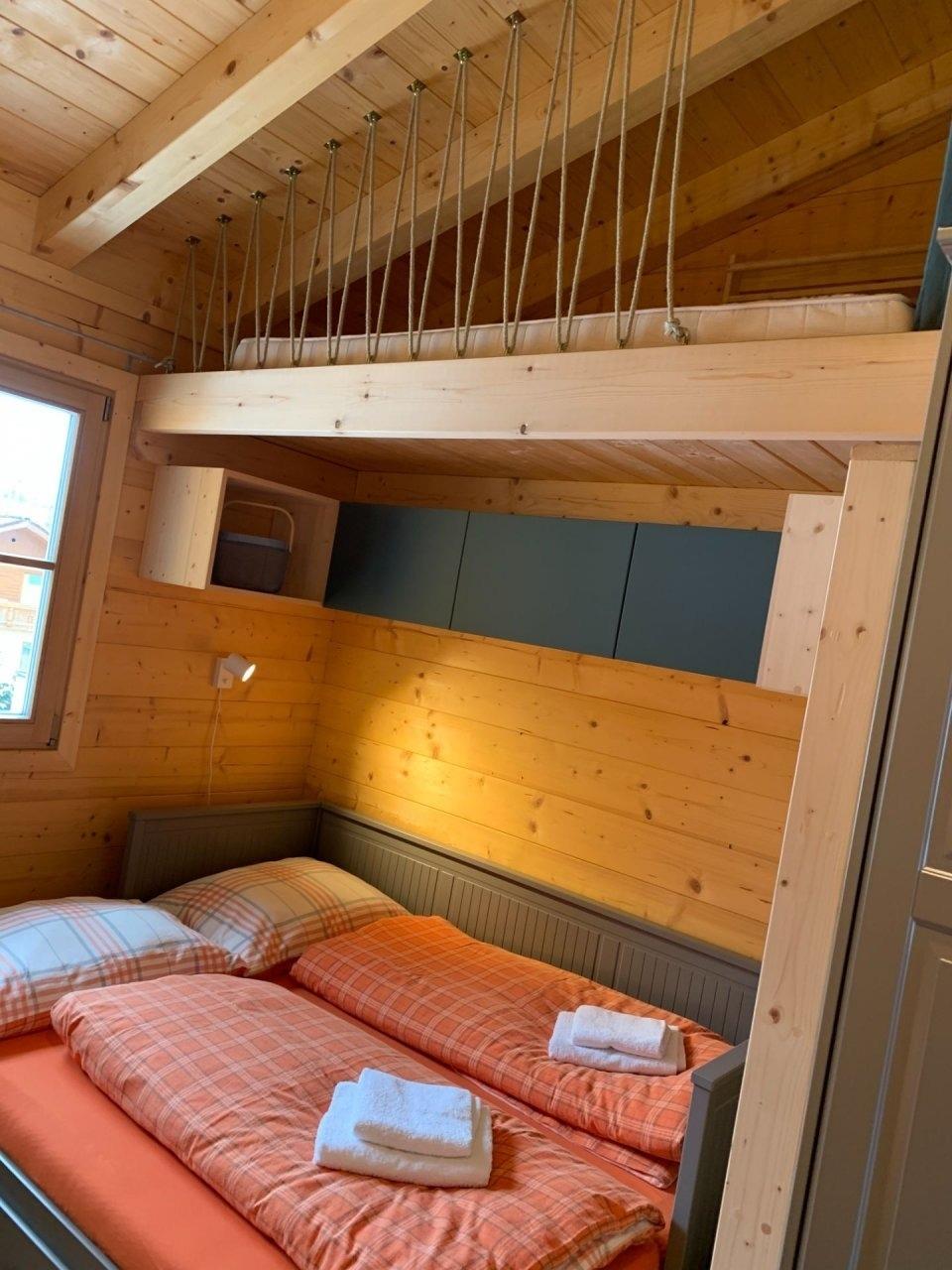 Unser kuscheliges Appartement 3 ist besonders gut geeignet für 2 Erwachsene und 1 Kind. Der Wohn-Schlafbereich verfügt über eine vollausgestattete Küchenzeile, einen Essbereich sowie ein Doppelbett, Bad mit Dusche und WC. Das Tüpfelchen auf dem i ist jedoch das Hochbett über dem Doppelbett, das besonders bei Kindern sehr beliebt ist.Raumaufteilung: Gemütliches Wohn-Schlafraum-Appartement mit komfortabler und gut ausgestatteter Küchenzeile, Esstisch sowie einem Doppelbett mit Hochbett für eine weitere Person. Bad mit Dusche und WC. Sat-TV mit Netflix und gratis W-Lan.