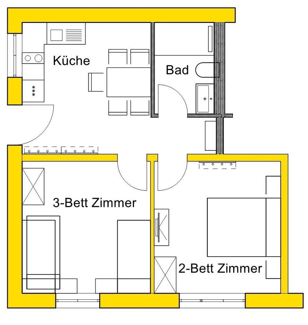 Unser gemütliches Appartement 1 bietet auf ca. 45 m² Platz für bis zu 5 Personen. Ausgestattet ist es mit 2 Schlafzimmern, einem großzügigen Bad und einer Küche. Diese verfügt über einen gemütlichen Essbereich. Besonderes Zuckerl in diesem Appartement Sat-TV mit Netflix.Raumaufteilung: ein Doppelzimmer und ein Dreibettzimmer (Stockbett und 1 Einzelbett). Weiters steht eine gut ausgestattete Küche mit gemütlichem Essbereich sowie ein Bad (mit Dusche und WC) zur Verfügung. Vorzimmer mit Garderobe, Sat-TV mit Netflix und gratis W-Lan.
