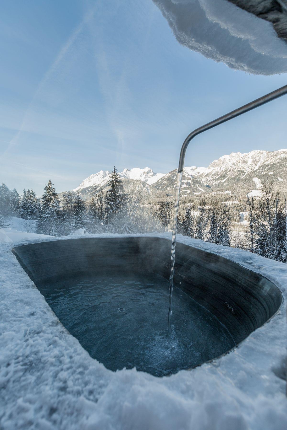 ? Highlight: Traumhafte Alleinlage mit Rundum-Bergblick, kombiniert mit exklusiven Wellnessmöglichkeiten wie Sauna und Outdoor-Natursteinwanne.