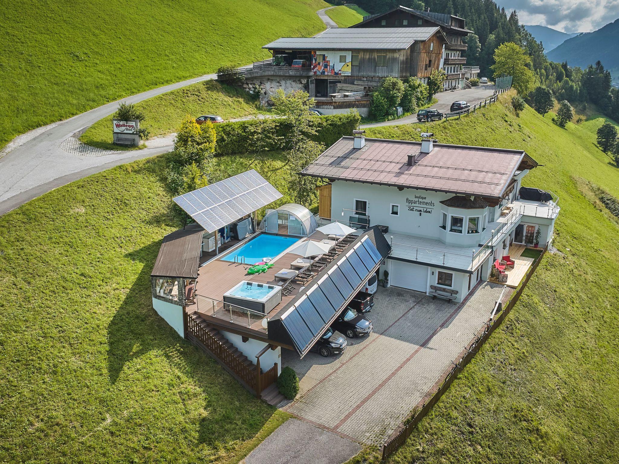 Das exklusive Ferienhaus mit Pool in den Alpen überzeugt mit echtem Bergfeeling und einem traumhaften Blick auf das Tal von Saalbach-Hinterglemm. Joker Card inkludiert! Ob Sommer oder Winter - die Boutique Appartements sind der perfekte Ort, um sich "Zeit zum Leben" zu nehmen. Erlebe zusammen mit deinen Leuten einmalige Tage in unseren modern ausgestatteten Appartements mit Whirlpool auf der Dachterrasse und grandiosen den Bergblick. Hunde sind bei uns auch herzlich willkommen! Die zwei Ferienwohnungen mit gemeinsamen Pooldeck sind auch der perfekte Ort für einen Familienurlaub. Übersichtliches Outdoor-Poolgelände und gemütliche Sitzgelegenheiten laden zu wunderbaren gemeinsamen Stunden ein. Ob eine Runde Ball spielen im Pool oder einfach nur auf den Liegen entspannen, in unserer Swimming Pool Area lässt sich problemlos der Tag verbringen. Unweit der Appartements befindet sich ein wahres Paradies für die ganze Familie – der Talschluss mit all seinen Attraktionen, wie Hochseilgarten, Hängebrücke u.v.m. Von Mai bis Ende Oktober ist die Joker Card im Preis inbegriffen. Diese Karte bietet Ihnen zahlreiche kostenfreie Vorteile und Ermäßigungen, darunter die kostenfreie Nutzung der Seilbahnen und Busse in der Region Im Winter bringt dich der Walleggalm Shuttlebus direkt von den Boutique Appartements kostenlos hoch zum Frühstück auf die Walleggalm bzw. auf die Piste! Von den Appartements führt euch eine Skiroute direkt zur Hochalmbahn und eine eigene Piste zum Haus zurück.