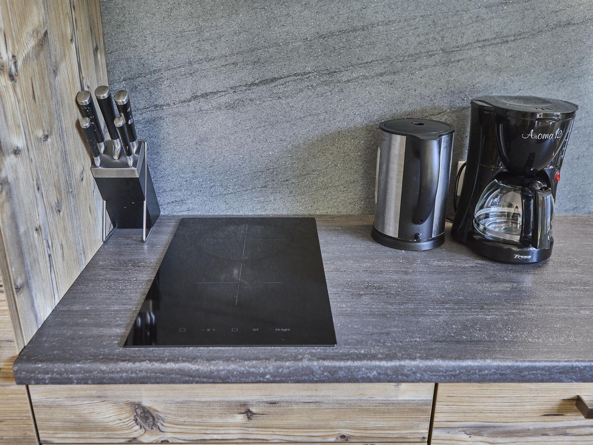Die Unterkunft verfügt über eine Terrasse mit Bergblick, einen Flachbild-TV, einen Essbereich, eine gut ausgestattete Küche und ein eigenes Bad mit einer Dusche. Eine Mikrowelle, ein Kühlschrank, ein Kochfeld, eine Kaffeemaschine und ein Wasserkocher sind ebenfalls vorhanden.