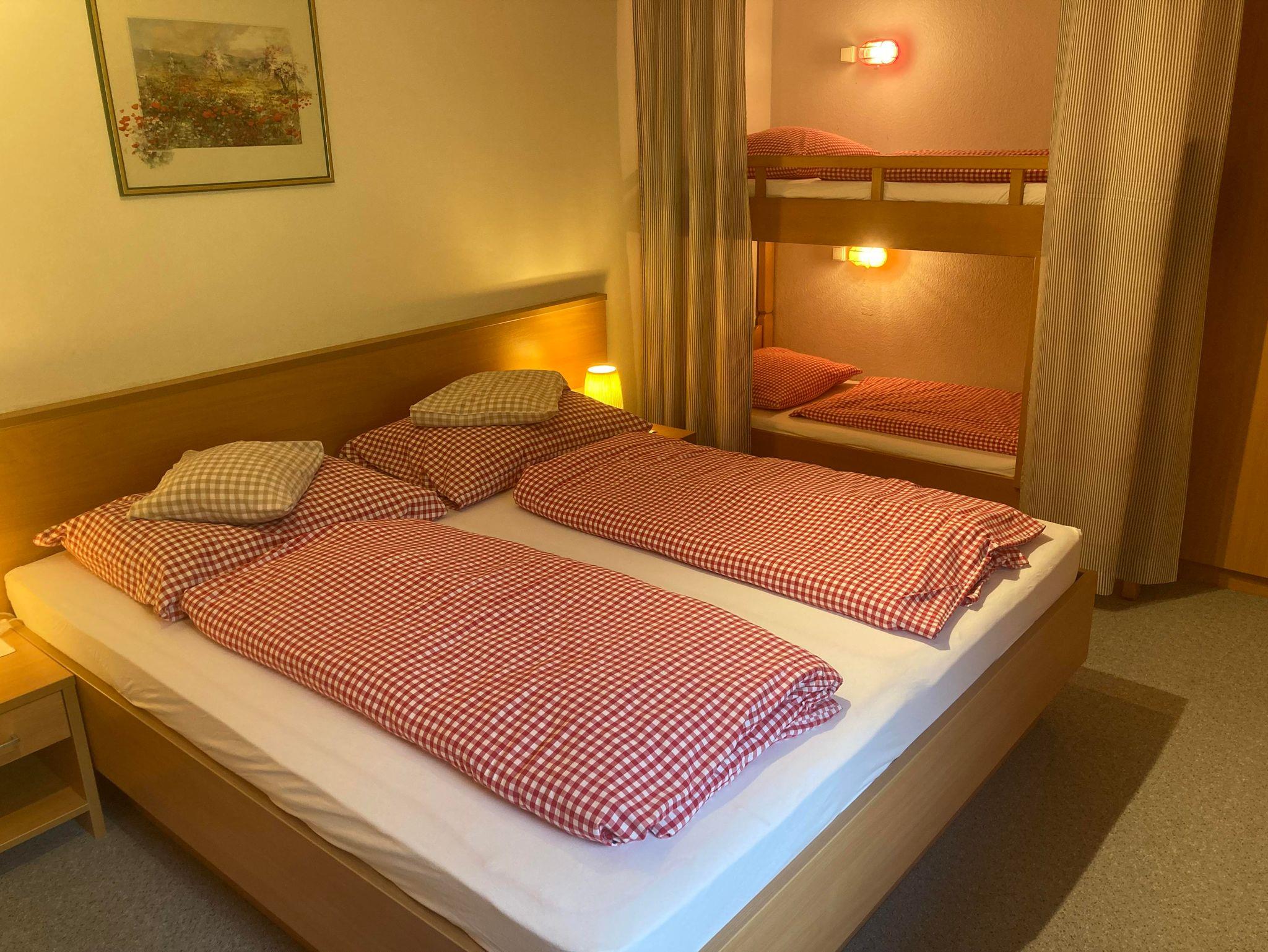 Ferienwohnung mit ca. 46 qm, 2-4 Pers; Schlafzimmer mit Doppelbett und Stockbett; Wohnzimmer mit Sitzecke, Lehnstuhl und Küchenzeile; Du/WC; Balkon nach Süden; Sat-TV.