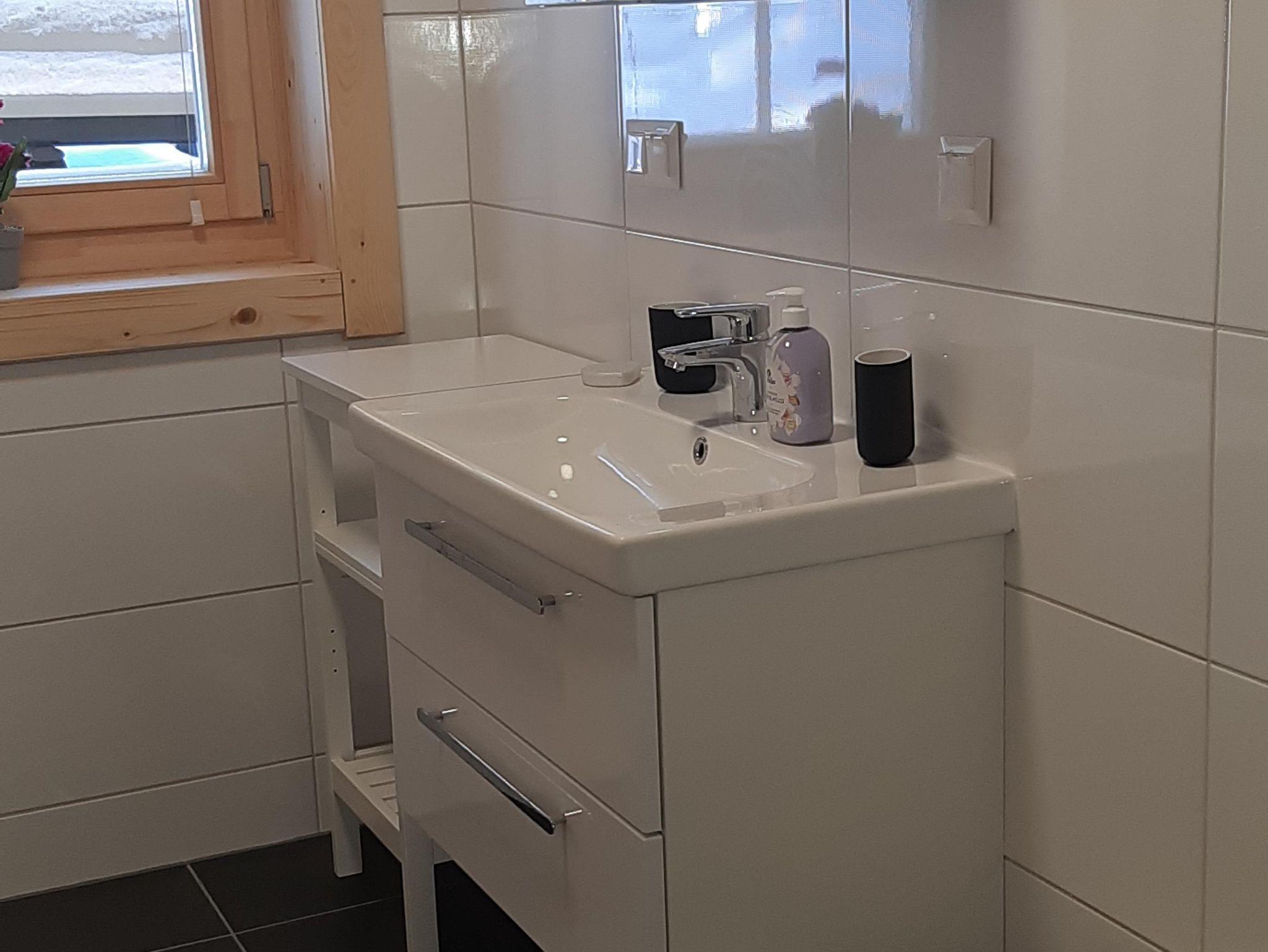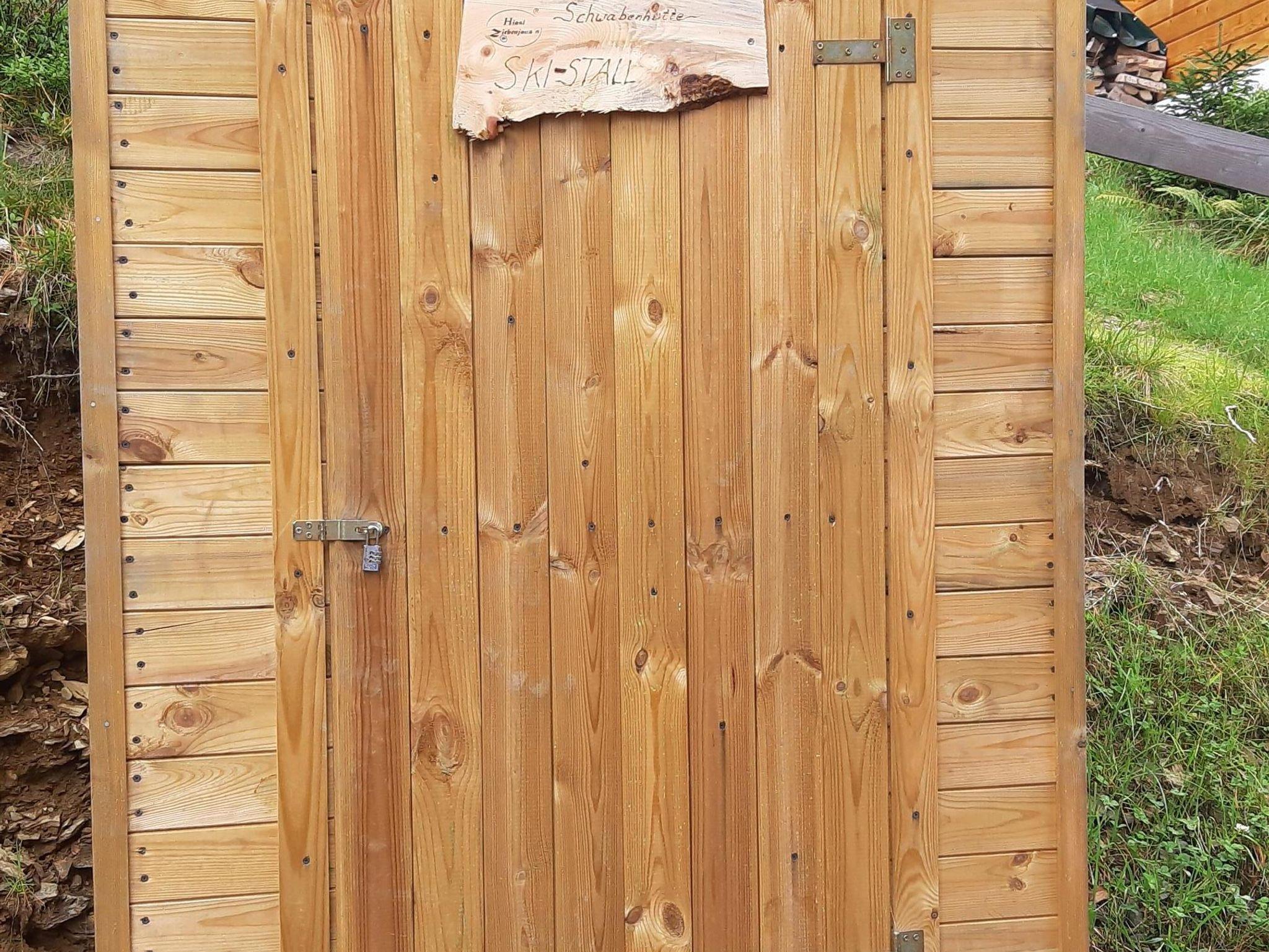 Schwabenhütte, Ferienhaus, Dusche und Bad, WC, waldseitig