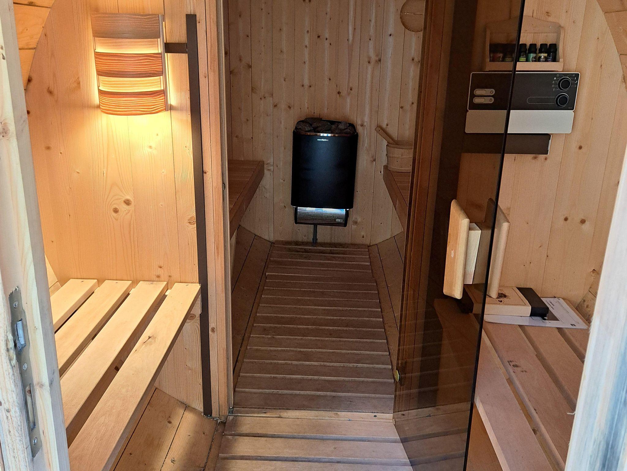 • Fass-Sauna im Garten mit 2 Saunaliegen