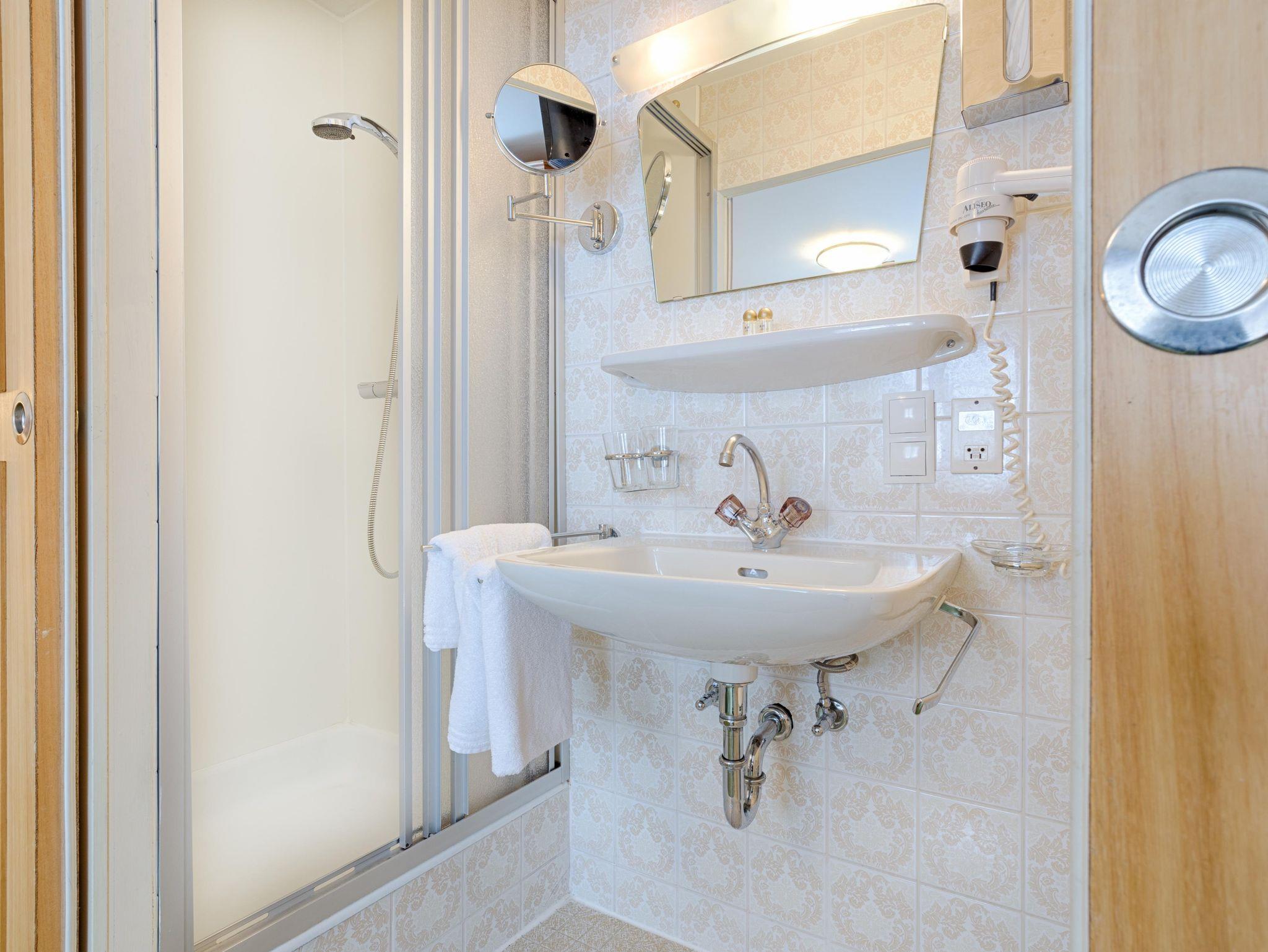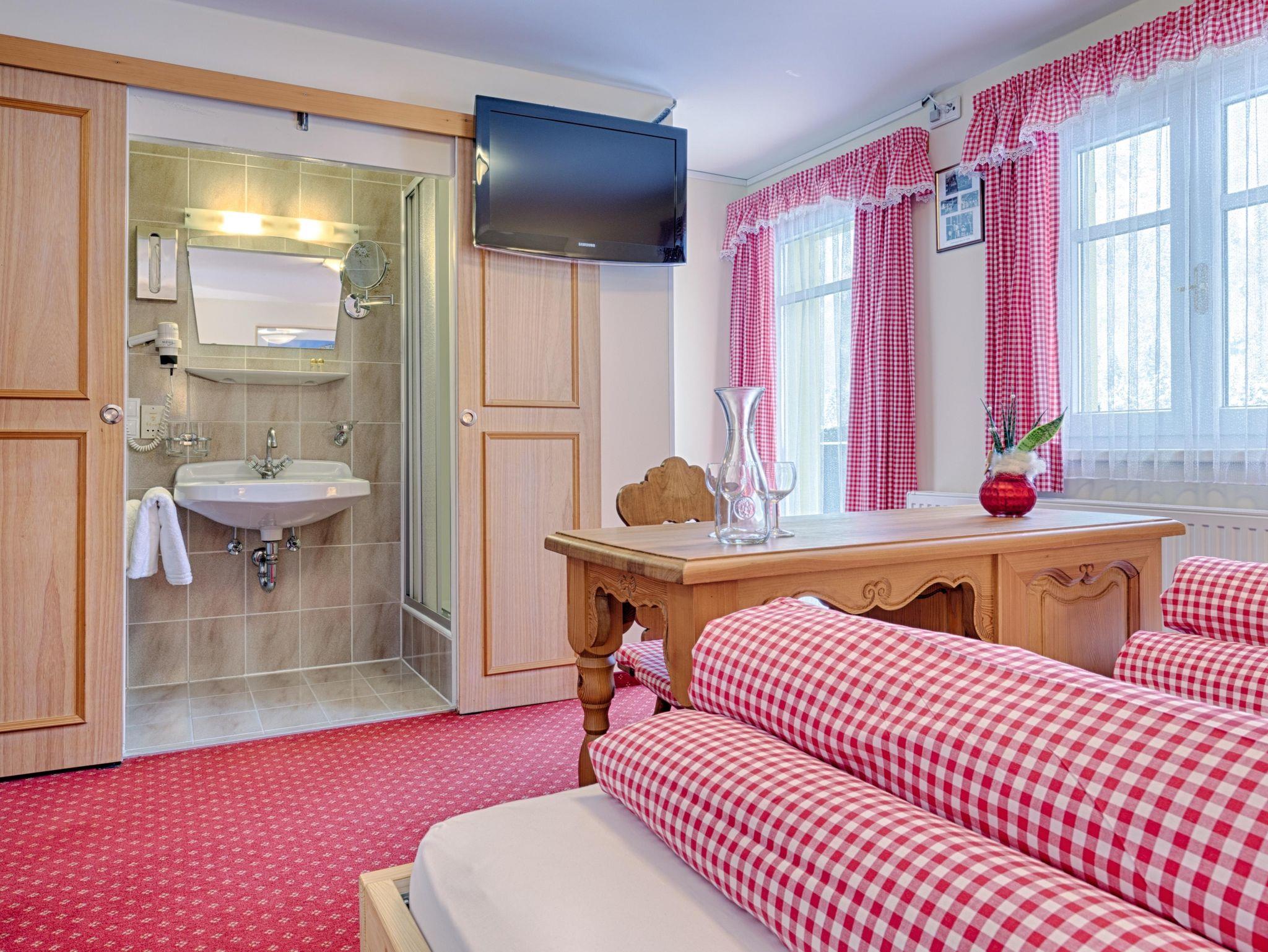 Zwei- oder Dreibettzimmer Arlberg mit Dusche, WC, Fön, SAT-TV, W-LAN, Selbstwahltelefon, Safe und teilweise Balkon