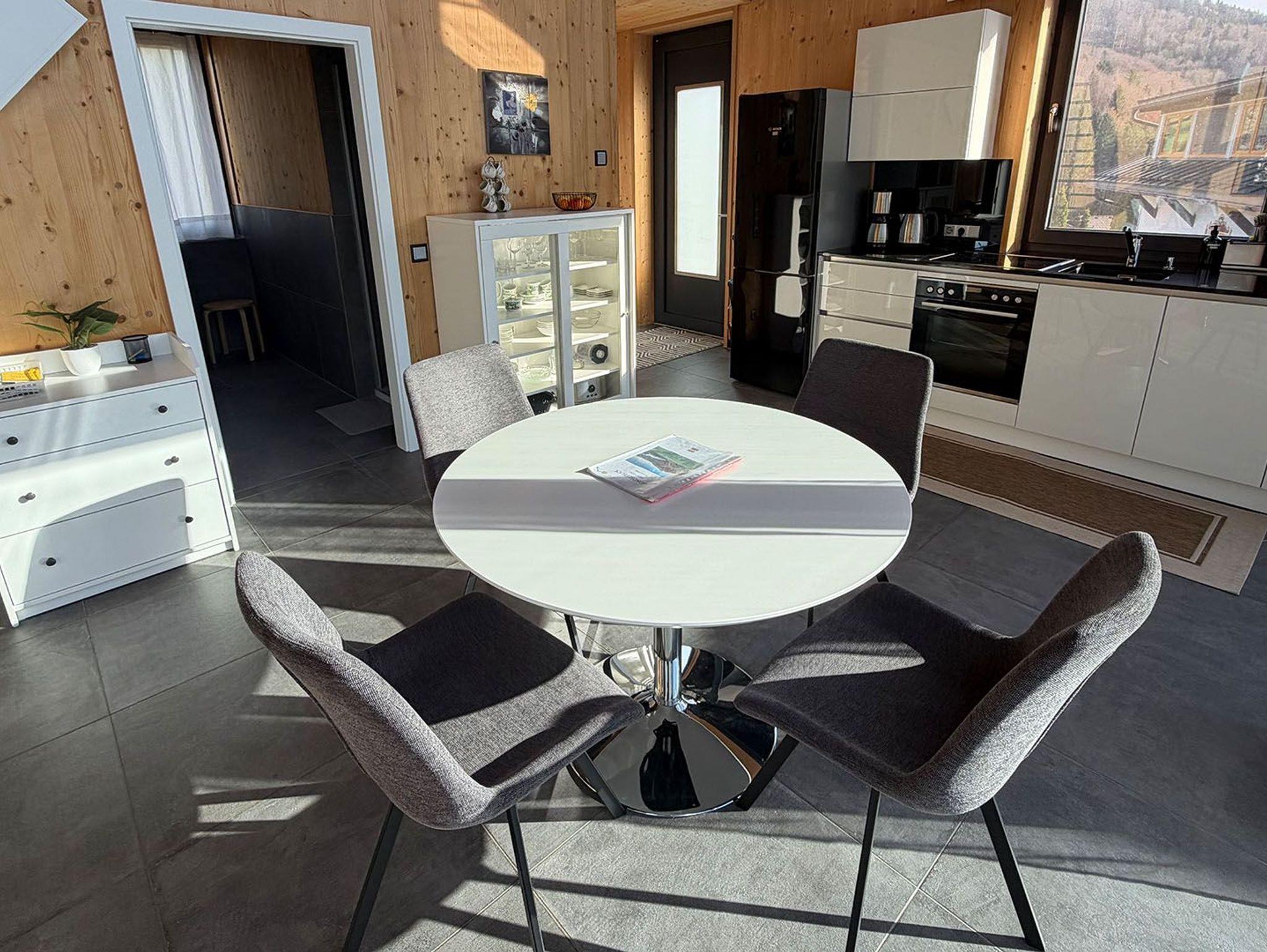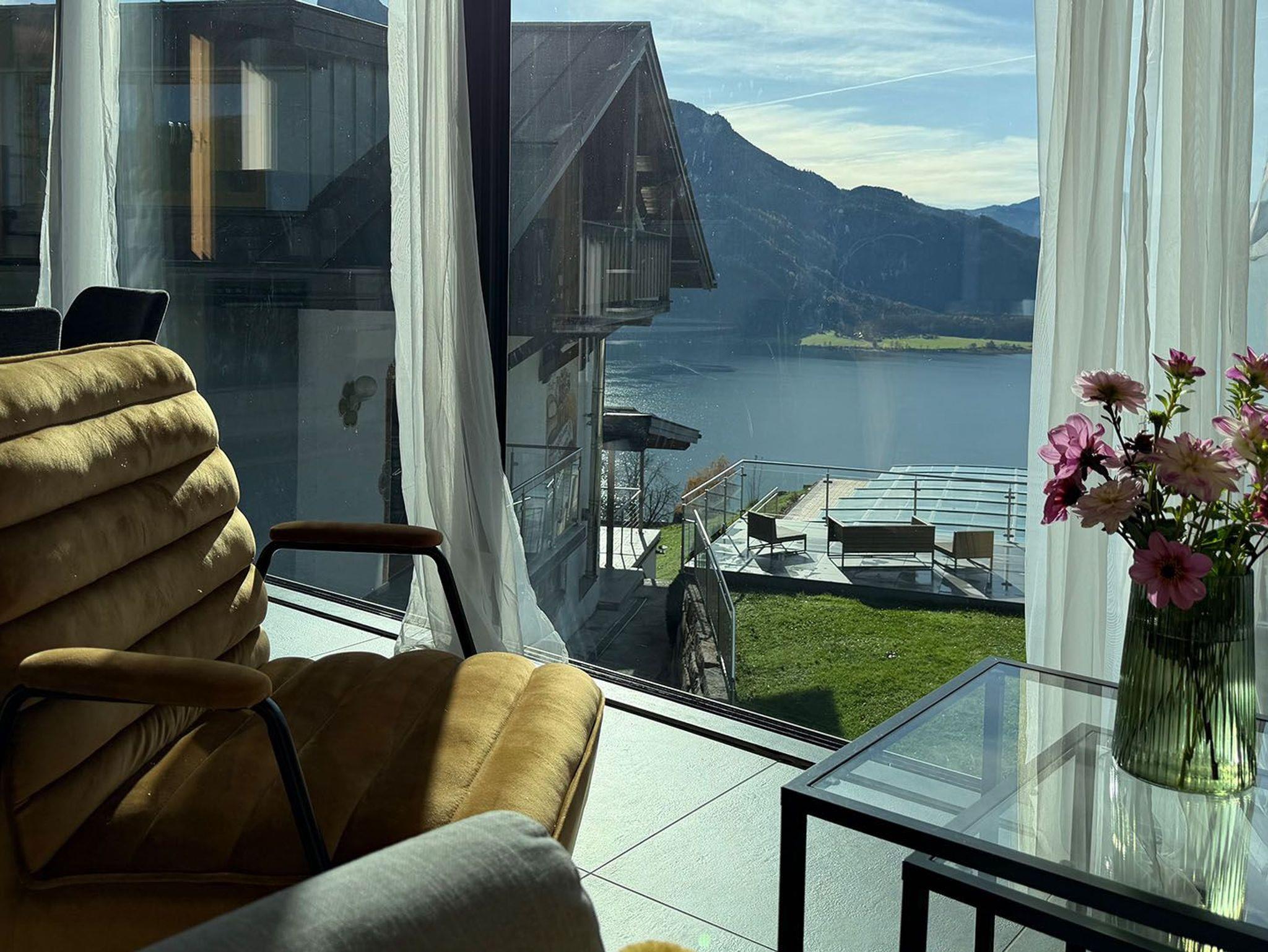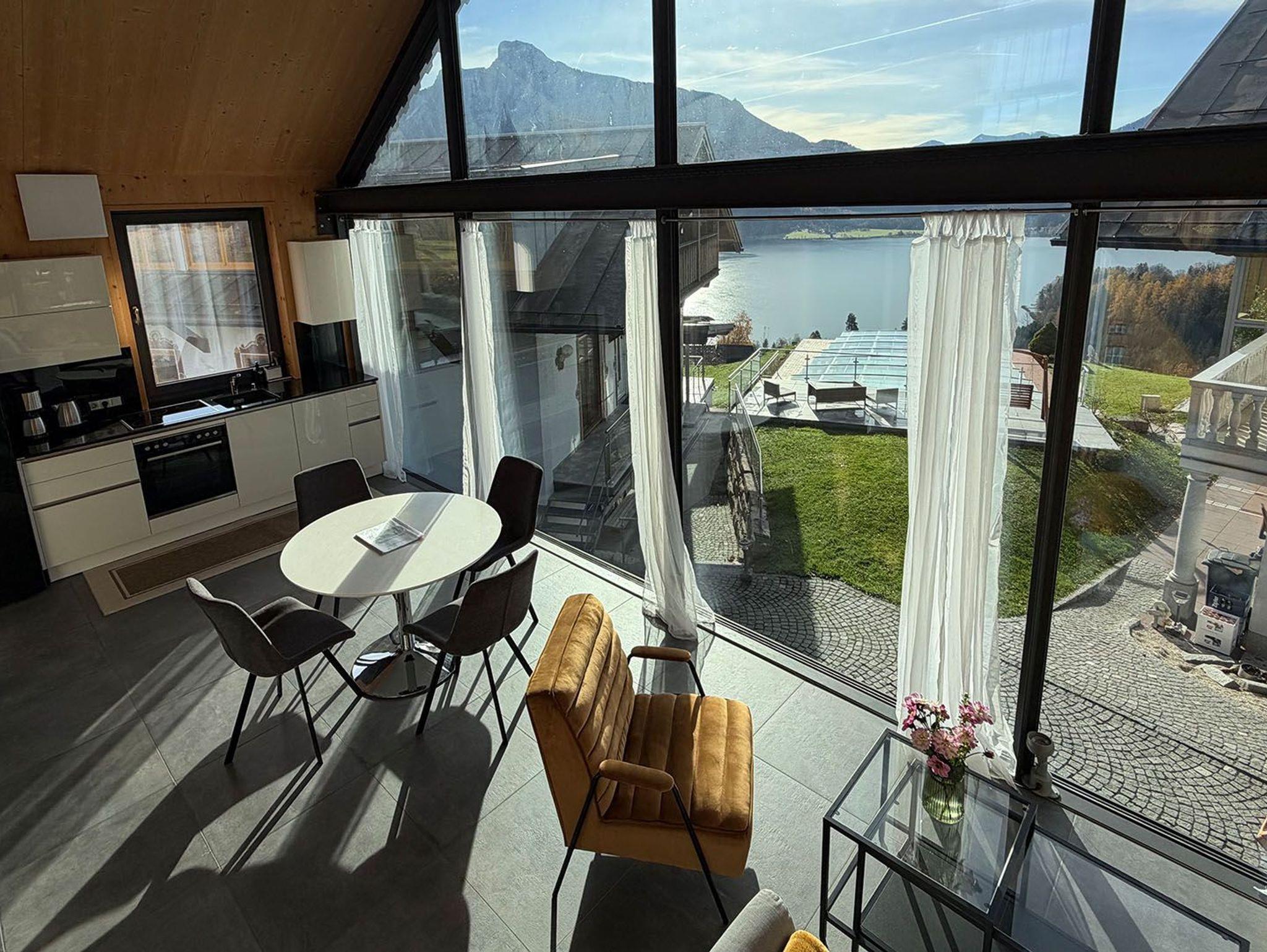 Das ökologische Chalet liegt auf einem idylischen Bauernhof im Salzkammergut mitten in der Natur in sonniger Südhnaglage ? ideal für Familien und Ruhesuchende.Die traumhafte Umgebung begeistert mit einem einmaligen Panorama über Mondsee und Schafberg, ebenso wie der beheizte Pool, die Sauna und Infrarotkabine. Wanderungen oder Mountainbike-Touren starten direkt ab der Haustüre.Die moderne Architektenwohnung ist stilvoll eingerichtet und überzeugt mit einem großzügigen Wohn-Essbereich, dessen große Glasfront einen herrlichen Panoramablick auf die umliegende Natur bietet und den Raum mit Licht durchflutet. Auf der kleinen Terrasse können Sie Ihren morgendlichen Kaffee mit sonnenstrahlen im Gesicht genießen. Mit Flat-Screen-Kabel-TV und WLAN bleiben Sie jederzeit bestens verbunden.