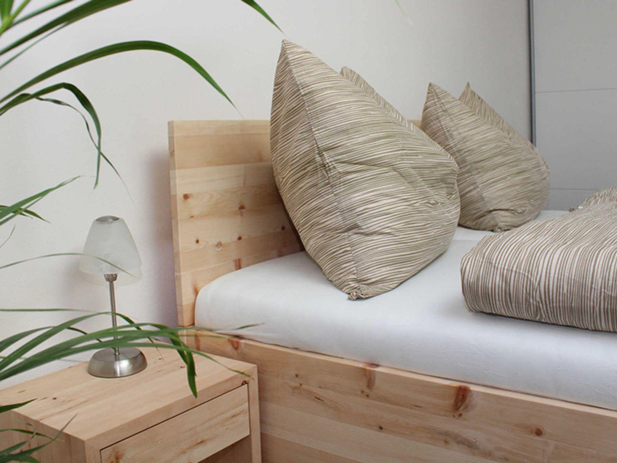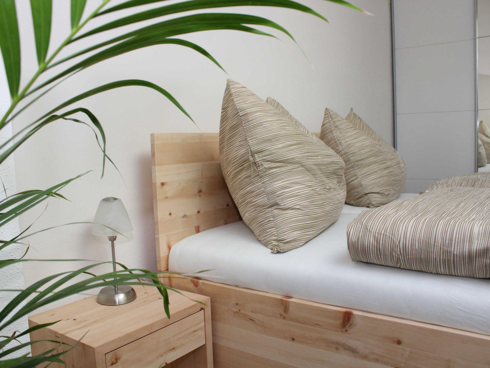 • Schlafzimmer 1: Hochwertiges gesundes Zirbendoppelbett; Breite 1,8 Meter für 2 Personen
