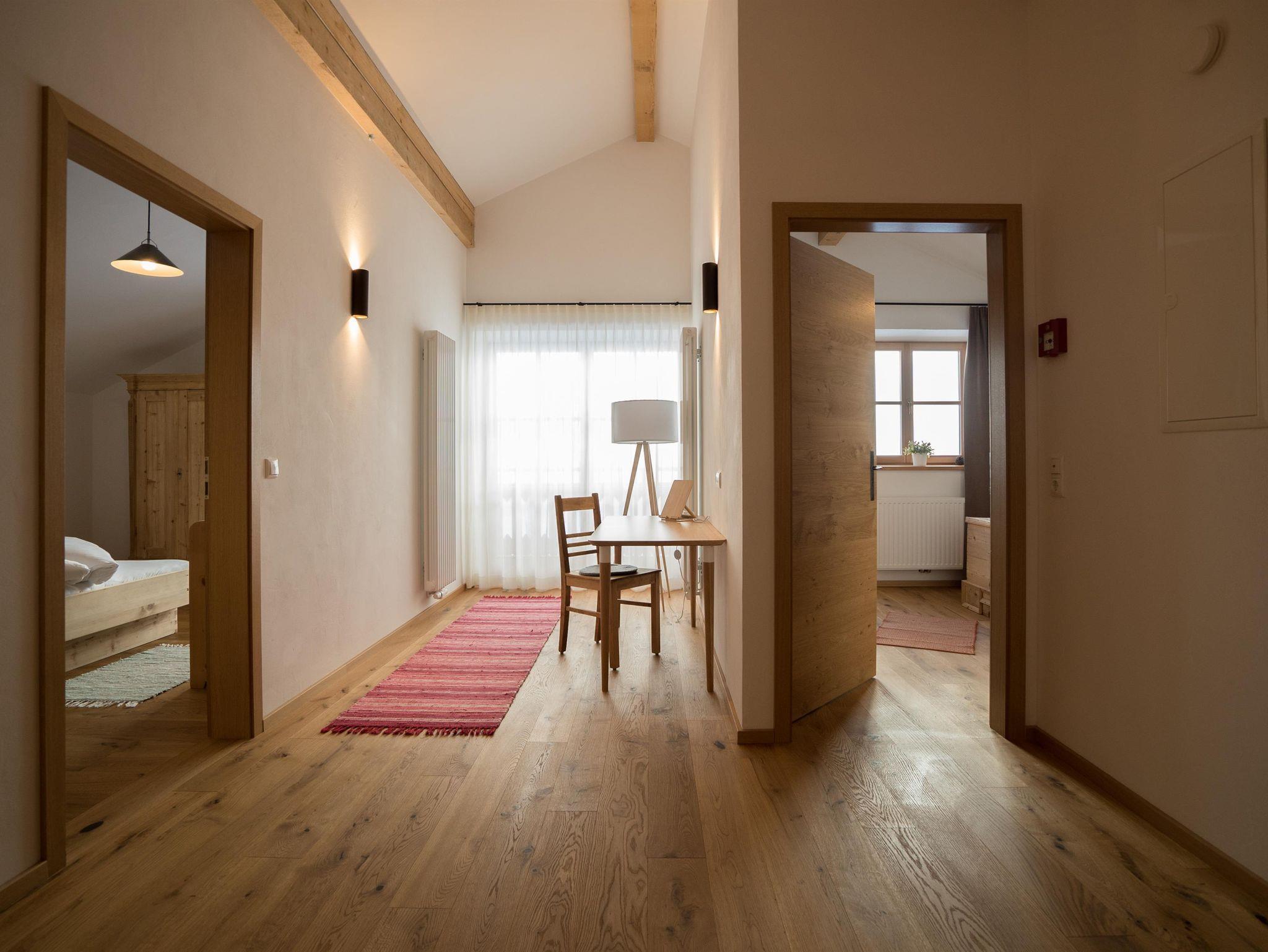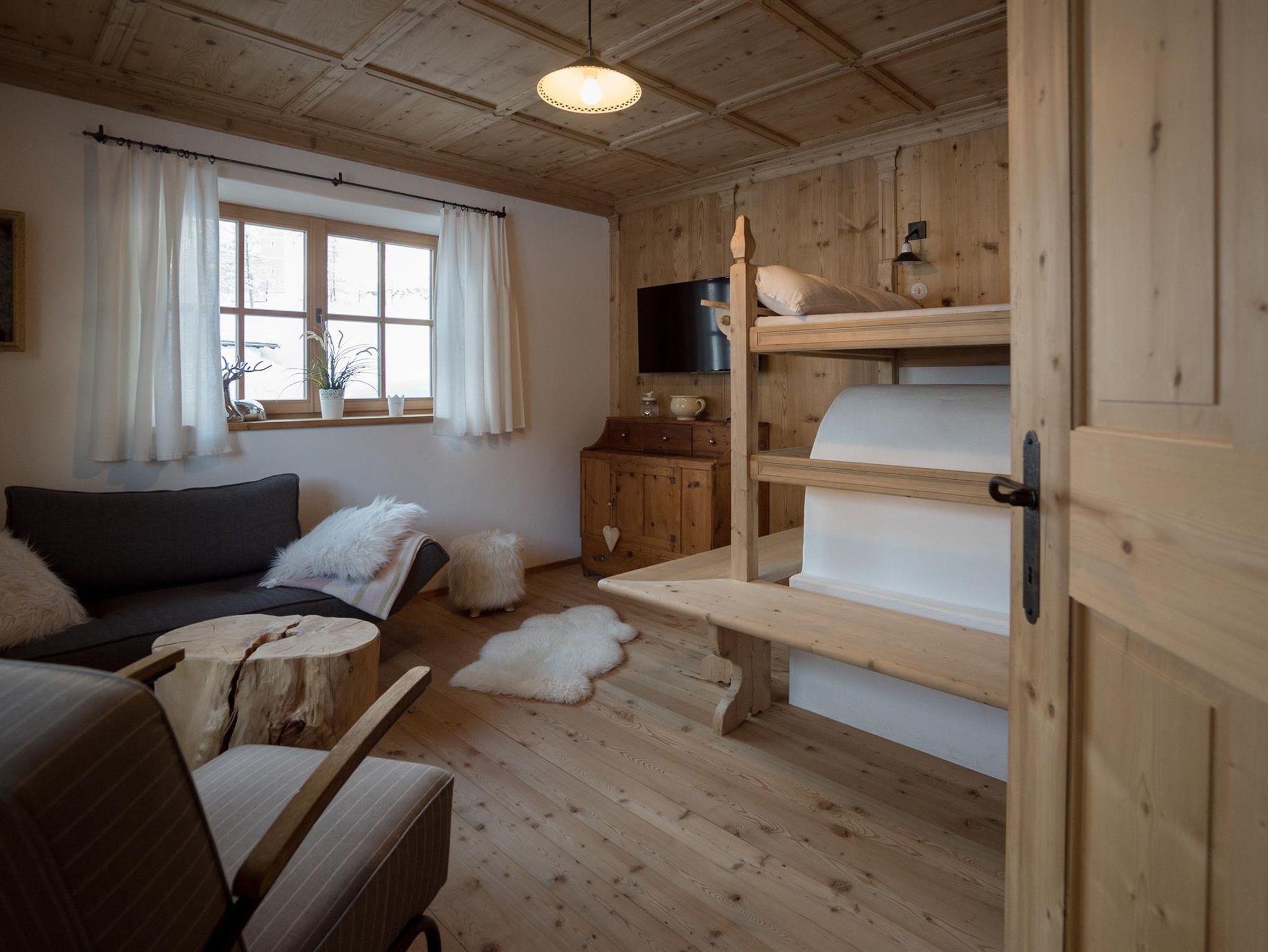 Messner ist eine wunderschön traditionell eingerichtete Bleibe über zwei Etagen. Moderner Komfort wurde in das Bild der alten großzügigen Bauernhauswohnung integriert, ohne den Charme und die Gemütlichkeit zu verlieren.