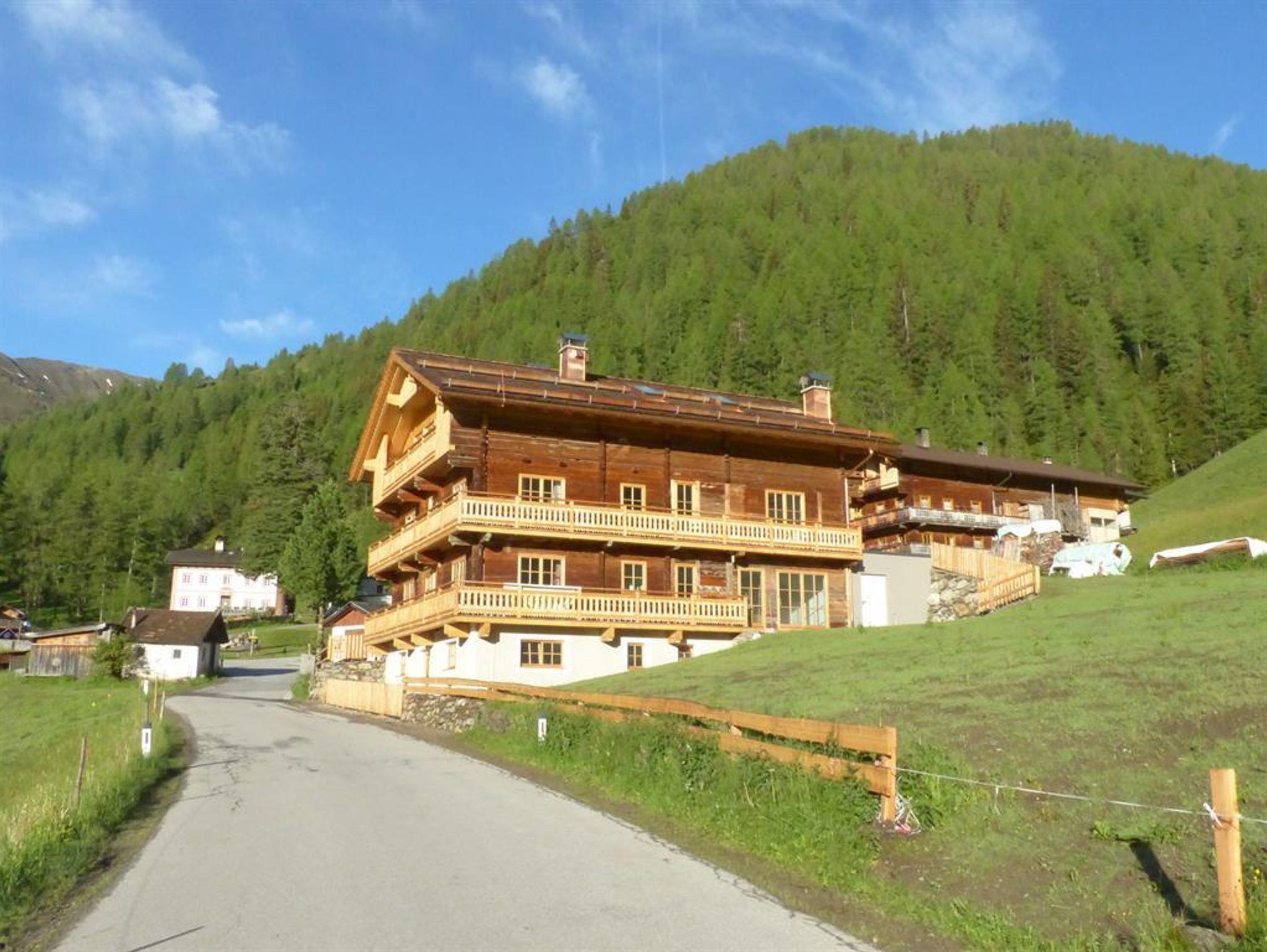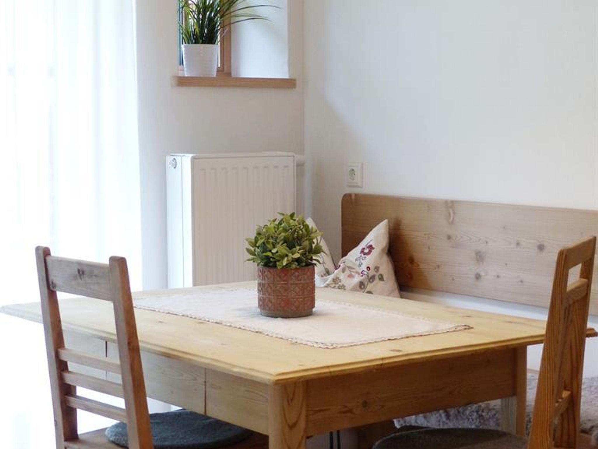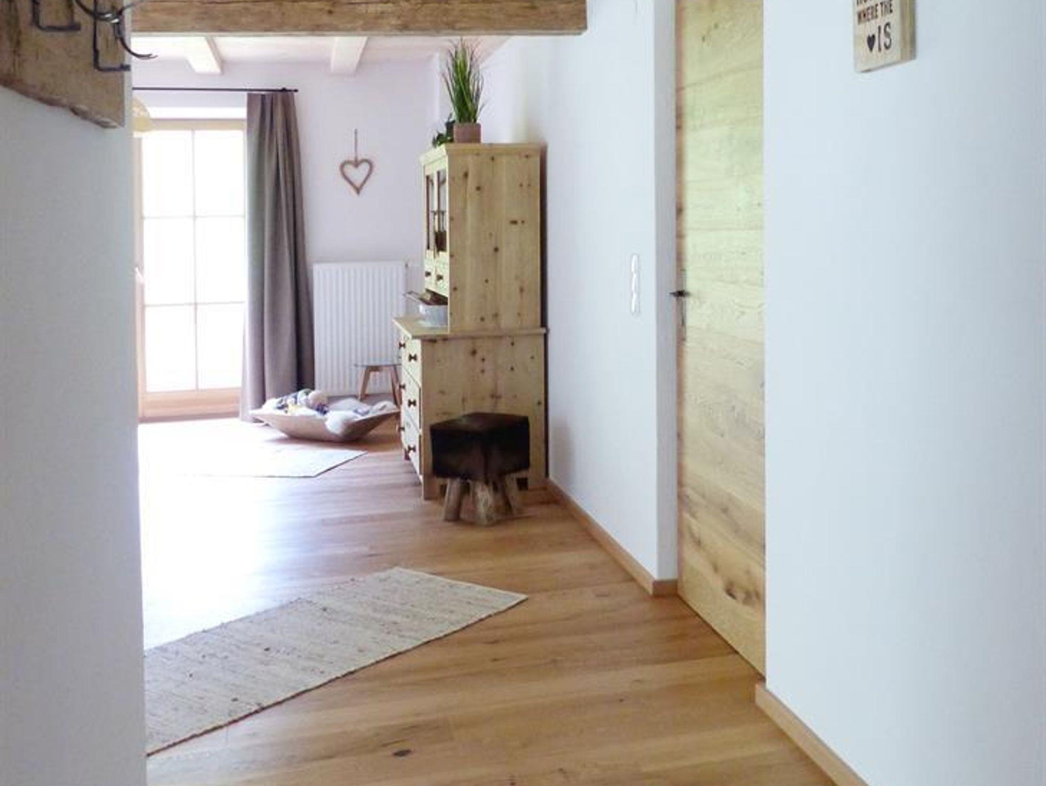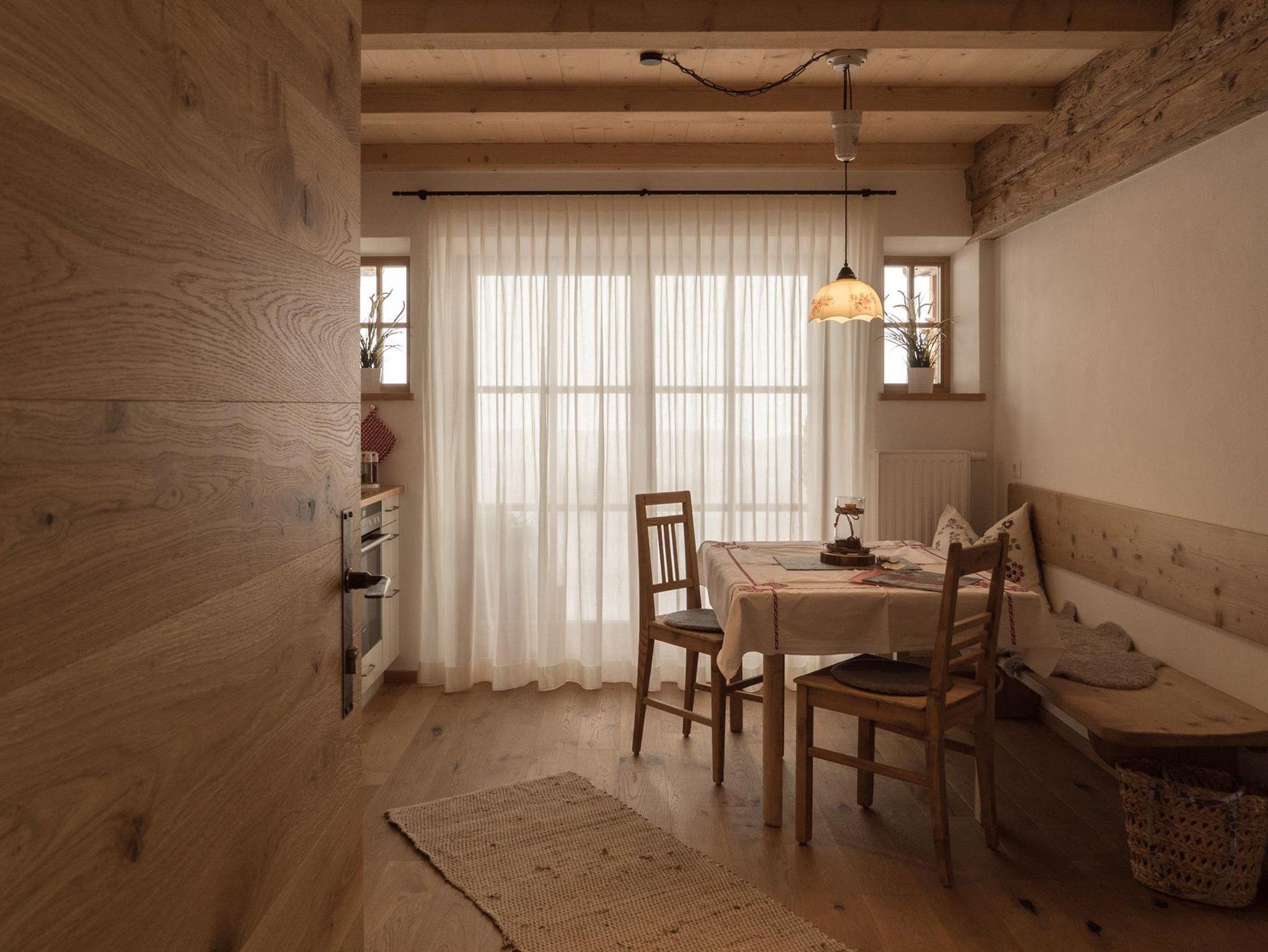 Unterstadel liegt im Hangbereich. Moderne und traditionelle Möbelstücke wechseln sich hier ab und verleihen der Wohnung einen gemütlichen Charme. Die Wohnung besitzt eine großzügige Terrasse mit Panoramablick sowohl ins Tal als auch zu den Gipfeln.