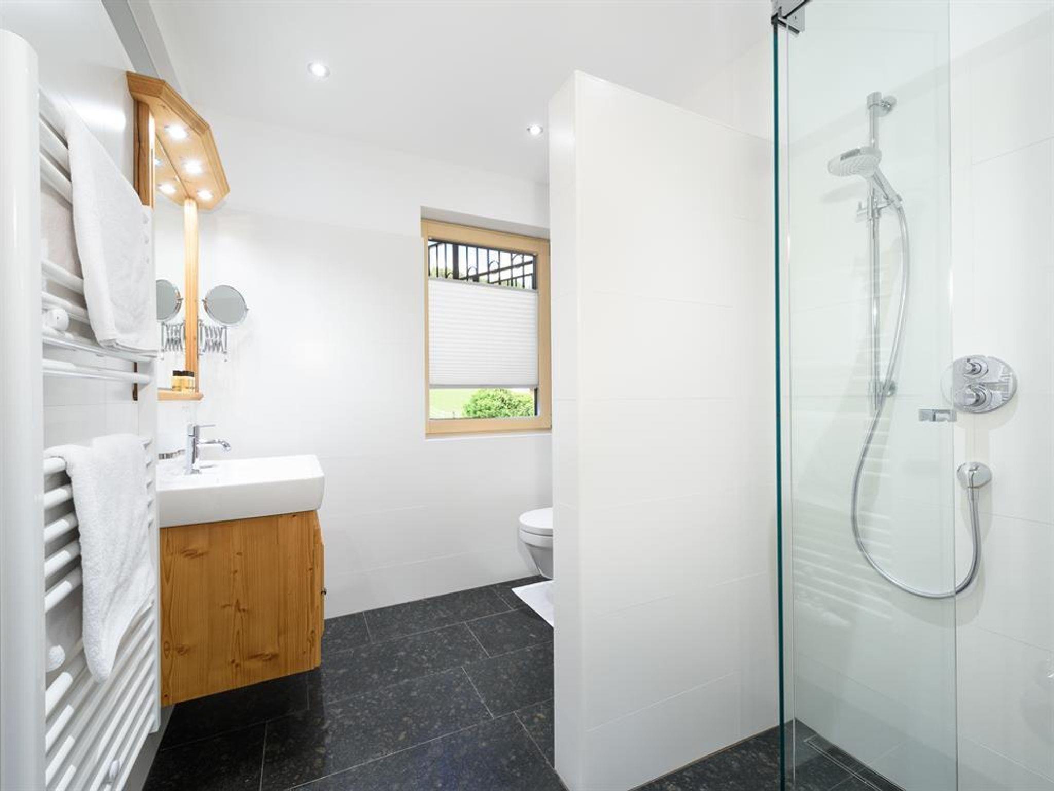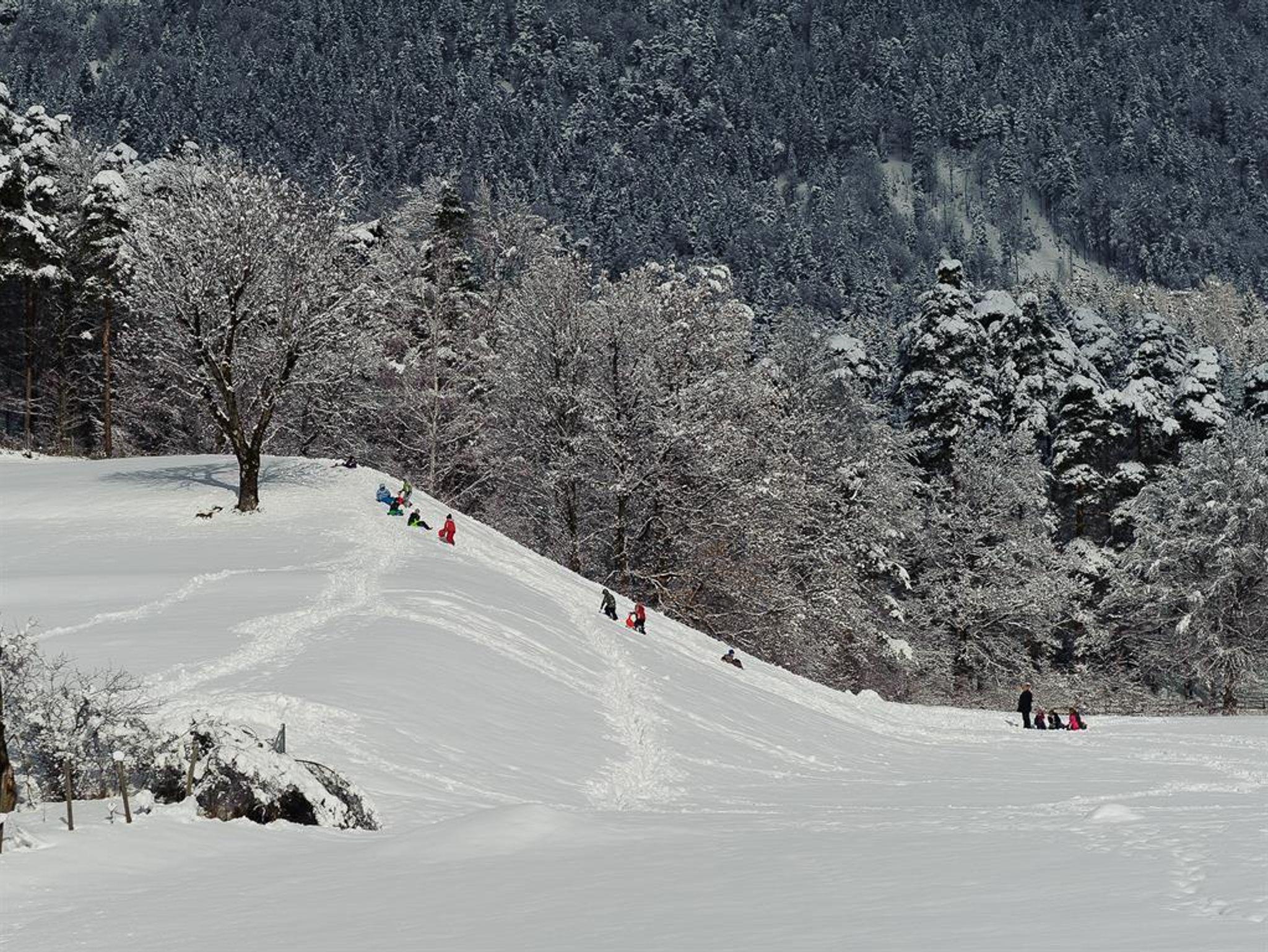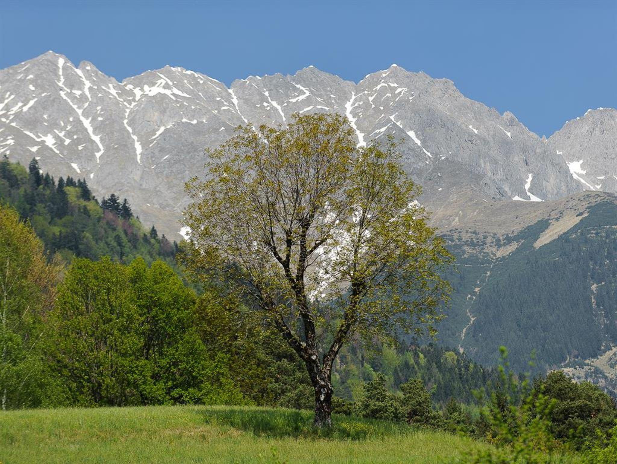 Mit viel Glück können Sie vom Westbalkon des Appartements Felsgeschichten Gämsen oder Kletterer in den steilen Felswänden hinterm Haus beobachten. Ziemlich sicher aber entdecken Sie im Appartement einen schönen Steinbock in einer Ofenkachel.