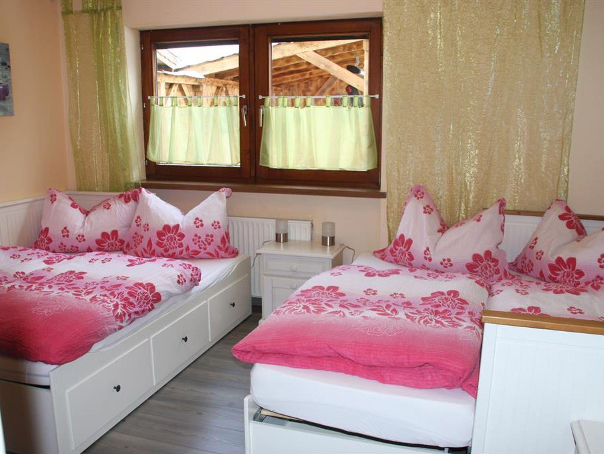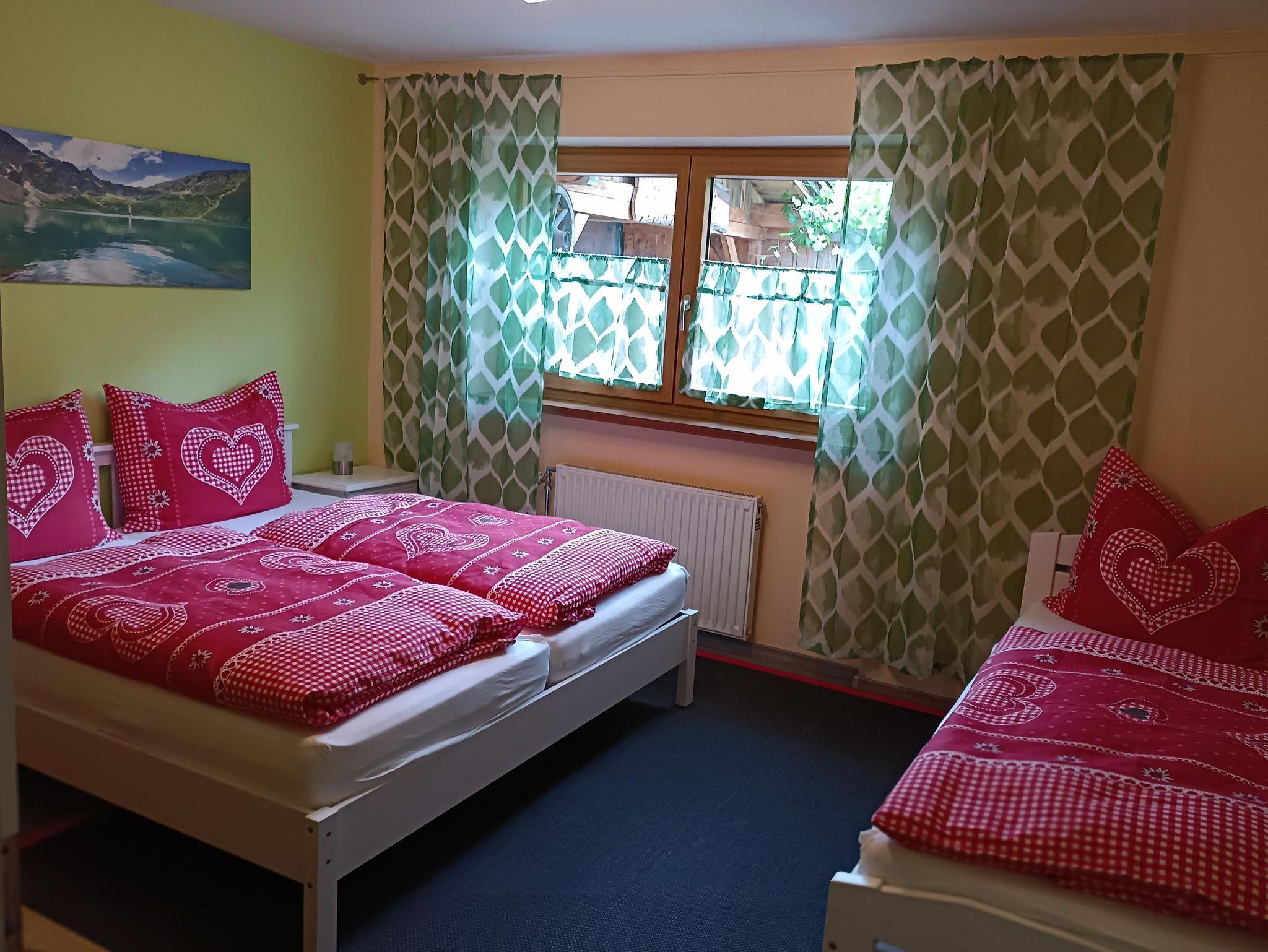 Unsere Ferienwohnung verfügt über 3 Schlafzimmer (2 Schlafzimmer für je 2 Personen und einen Schlafraum für bis zu 3 Personen mit TV), eine Küche mit großem Esstisch und einem großzügigen Badezimmer mit Dusche und WC in der Ferienwohnung und ein neues Bad separat, dass Sie gerne nutzen können.