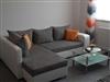 Sofa, Sat TV , Wohnwand mit Flachbildschirm.