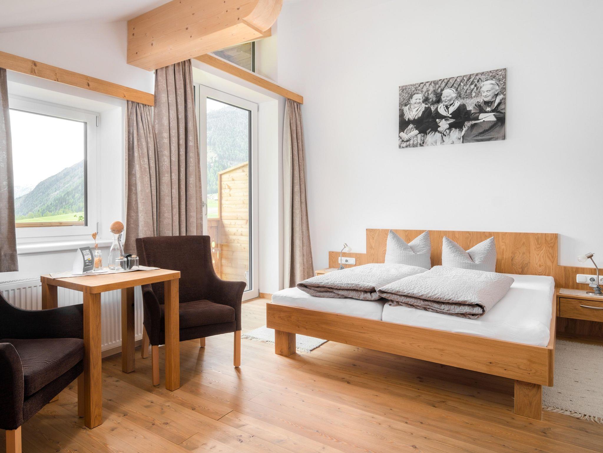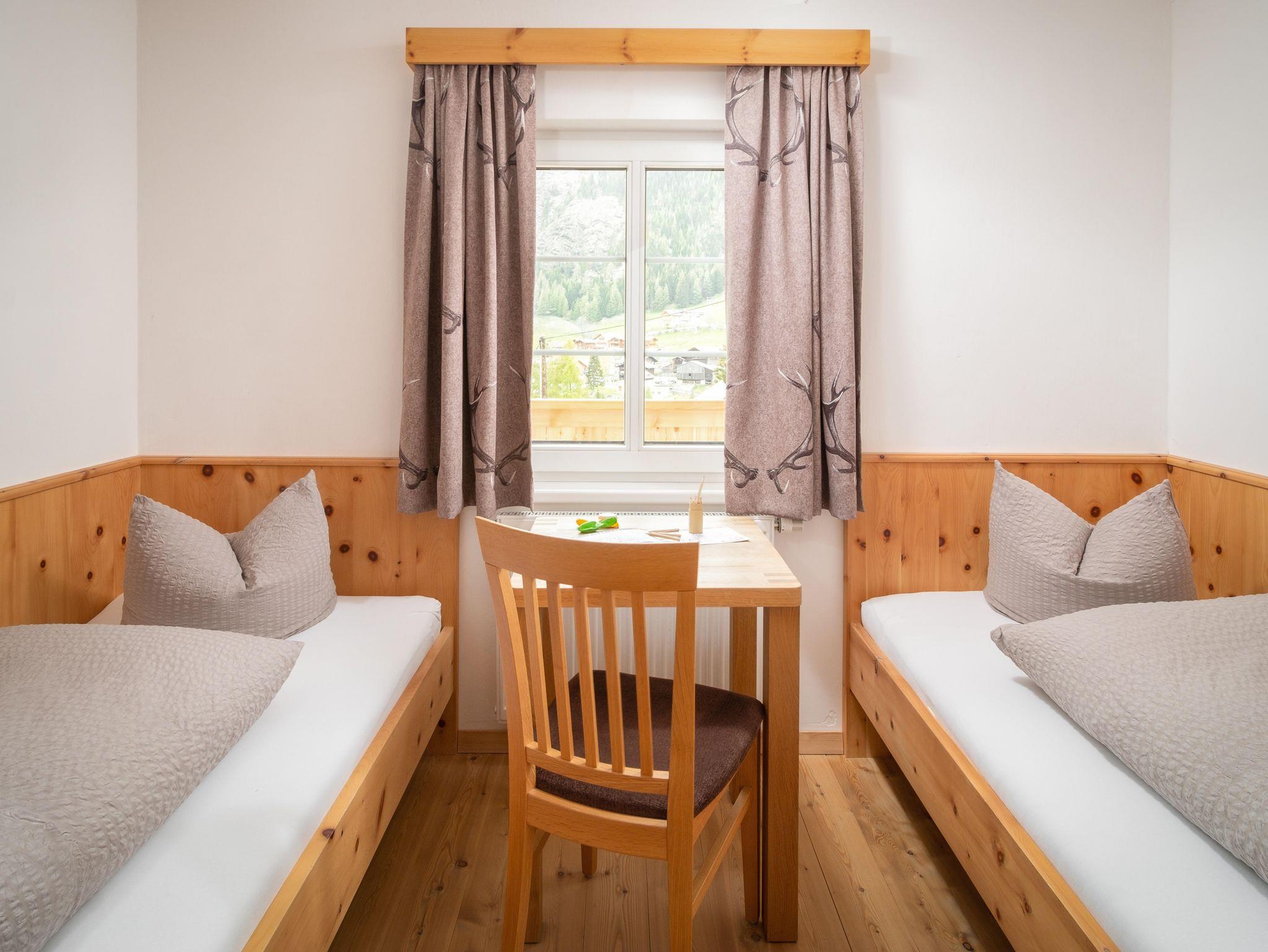 Das kleine aber feine Zweibettzimmer hat ca. 15m² und ist nach Westen ausgerichtet. Besonders wohltuend ist der Duft der Zirbe. Das Zimmer ist mit Zirbenmöbel, Holzboden, Dusche und WC, SAT-TV und direkten Zugang zum Balkon ausgestattet.
