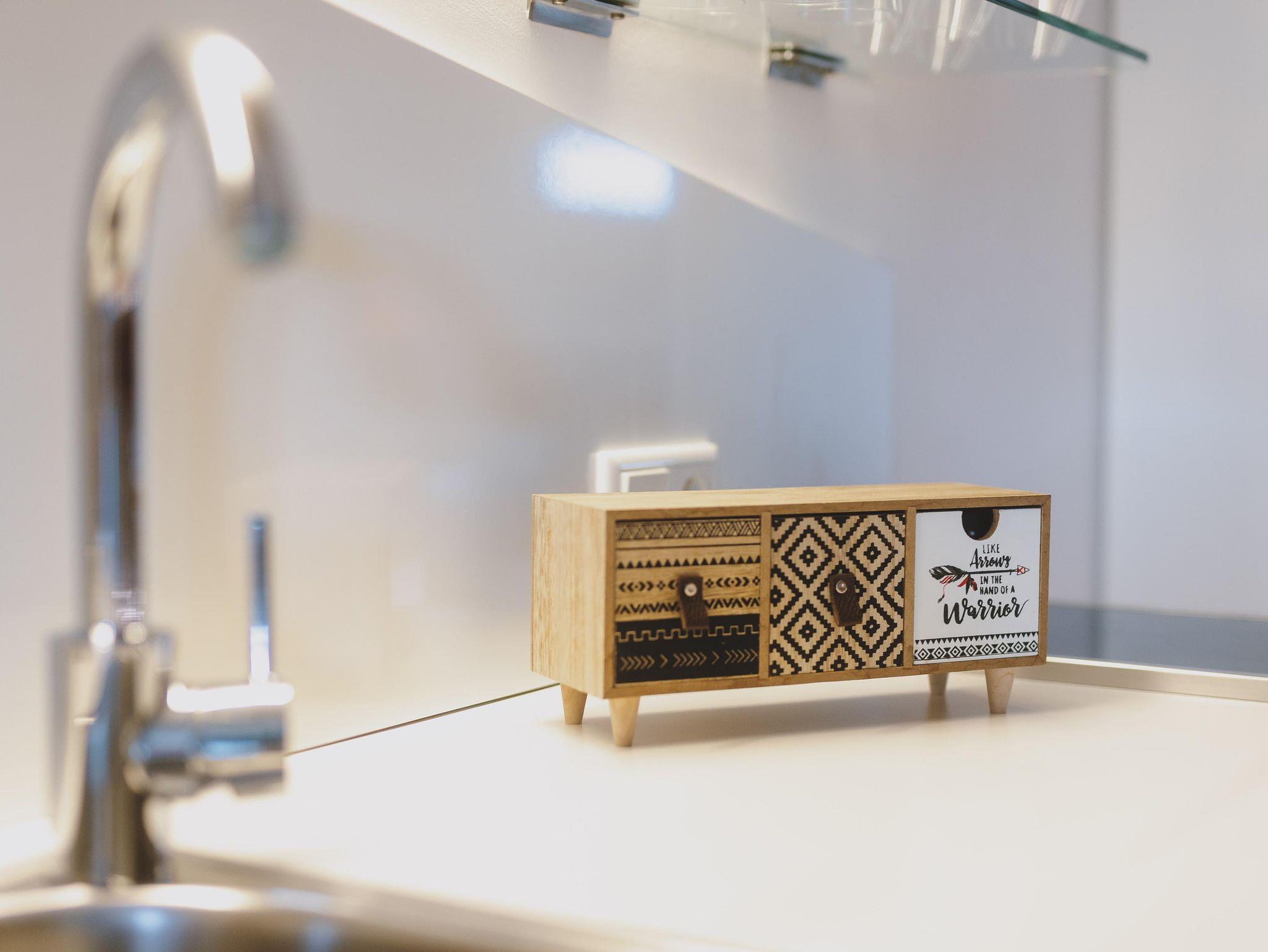 Zwei komplett getrennte Schlafzimmer, ein Masterbedroom , ein „White Room“ mit riesigem Panoramafenster und eine „Knautsch Couch“ für Familienabende stehen auf 77qm zur Verfügung!