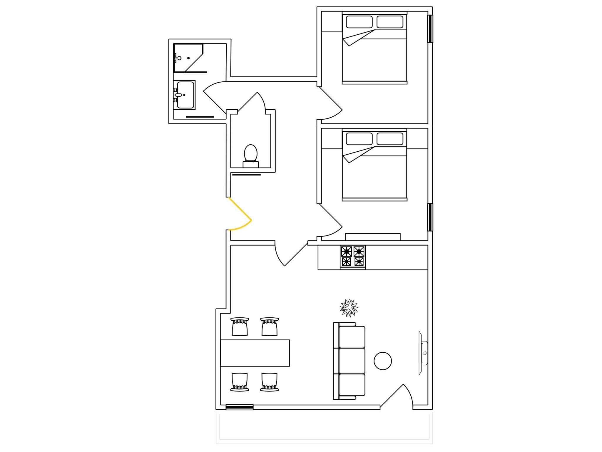 Das Appartement bietet mit zwei getrennten Schlafzimmern und hoher Deckenhöhe ausreichend Platz zur Erholung.