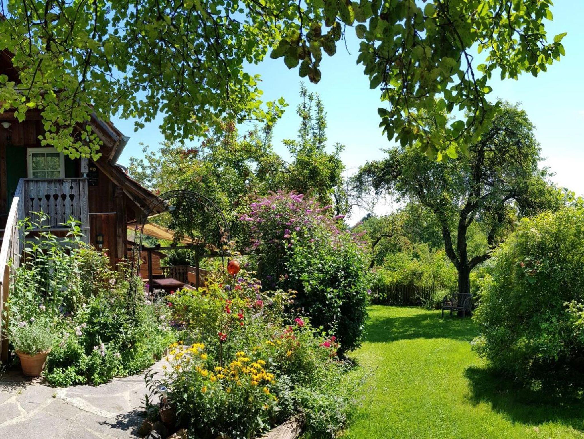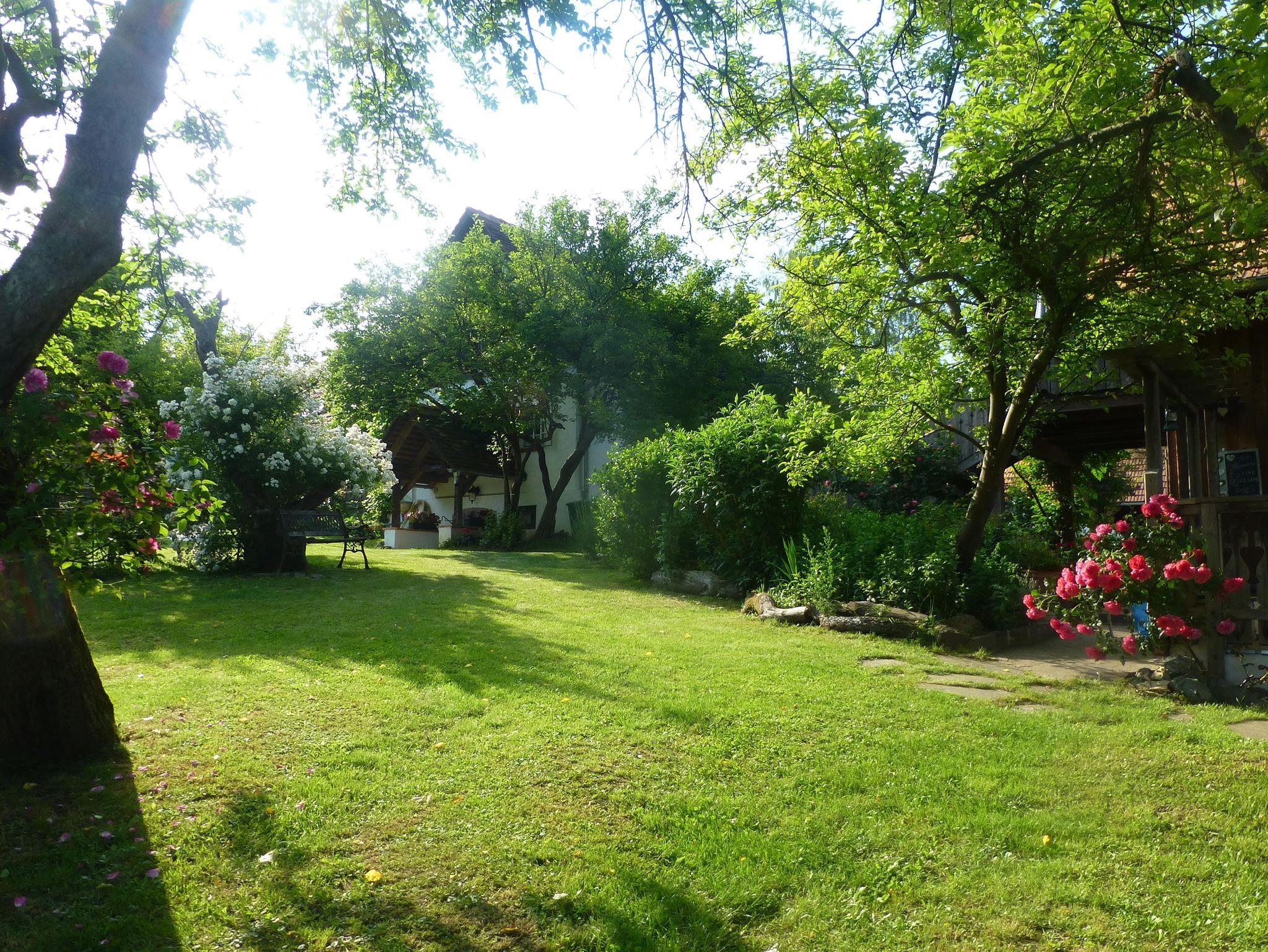 In unserem großen Naturgarten blühen unzählige Blumen wie Rosen und Sträucher, die dazu einladen, durch das grüne Paradies zu schlendern und die Seele baumeln zu lassen. Viele Sonnen- und Schattenplätze genießen Sie im Liegestuhl oder in der Hängematte.