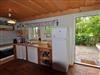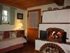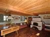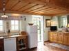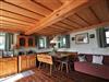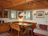 • Eine rustikale Wohnküche mit offenem Kaminfeuer, einer großen Essecke und direktem Ausgang zur Sonnenterrasse