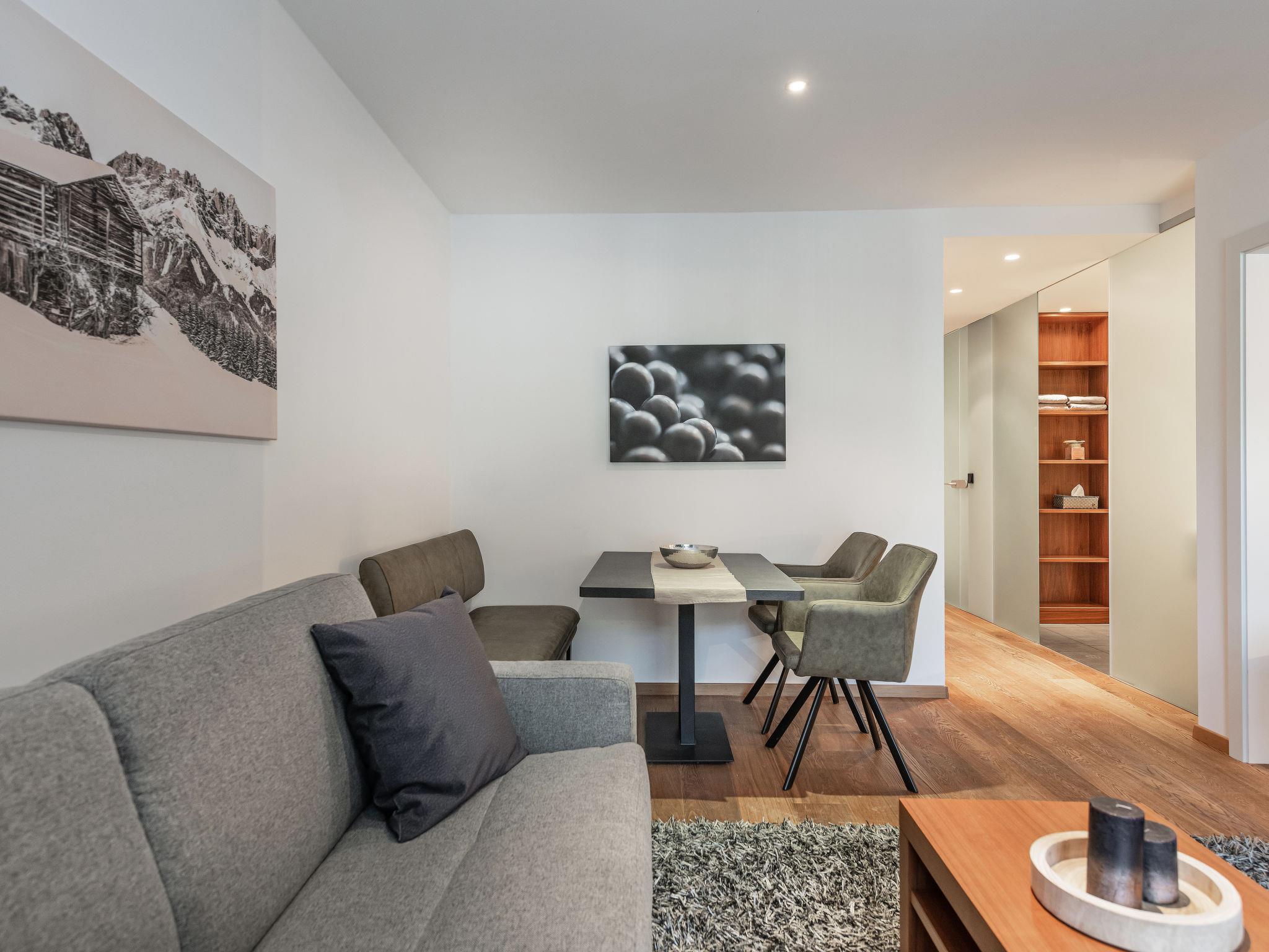 "Premium", 3-Zimmer-Wohnung 65 m2. Modern und geschmackvoll eingerichtet: Wohn-/Schlafzimmer mit 1 Doppeldiwanbett, Essecke und Sat-TV (Flachbildschirm). 1 Doppelzimmer mit Dusche/WC. 1 Doppelzimmer. Offene Küche (Backofen, 4 Glaskeramikplatten, Toaster, Wasserkocher, Mikrowelle, elektrische Kaffeemaschine). Dusche/WC. Heizung. Balkon oder Terrasse. Terrassenmöbel. Schöne Sicht auf die Berge. Zur Verfügung: Haartrockner. Internet (WLAN, gratis). Bitte beachten: Nichtraucher-Unterkunft. Beim Mietobjekt handelt es sich um ein Typenhaus bzw. Um eine Typenwohnung.