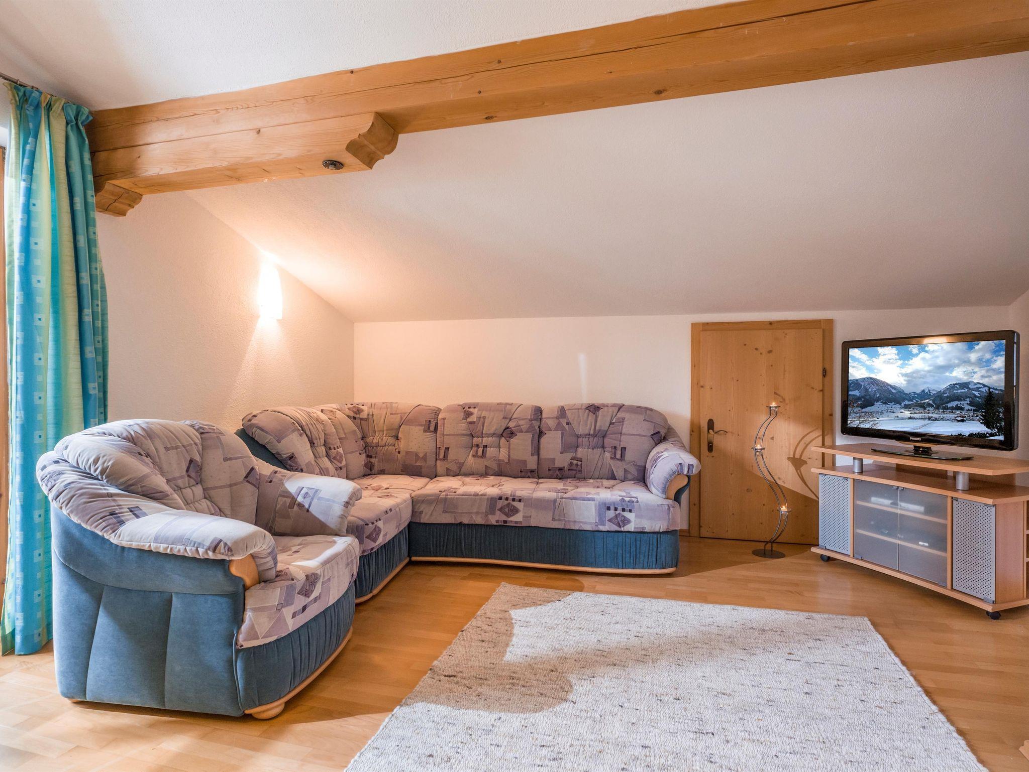 Großes Appartement (75m² groß) mit Küche, Wohnzimmer mit Essbereich, 2 Schlafzimmer (1x Doppelbett und 1x mit 2 separaten Einzelbetten), großes Badezimmer mit Dusche, Badewanne und separates WC. Balkon mit traumhaften Blick auf die umliegende Bergwelt.