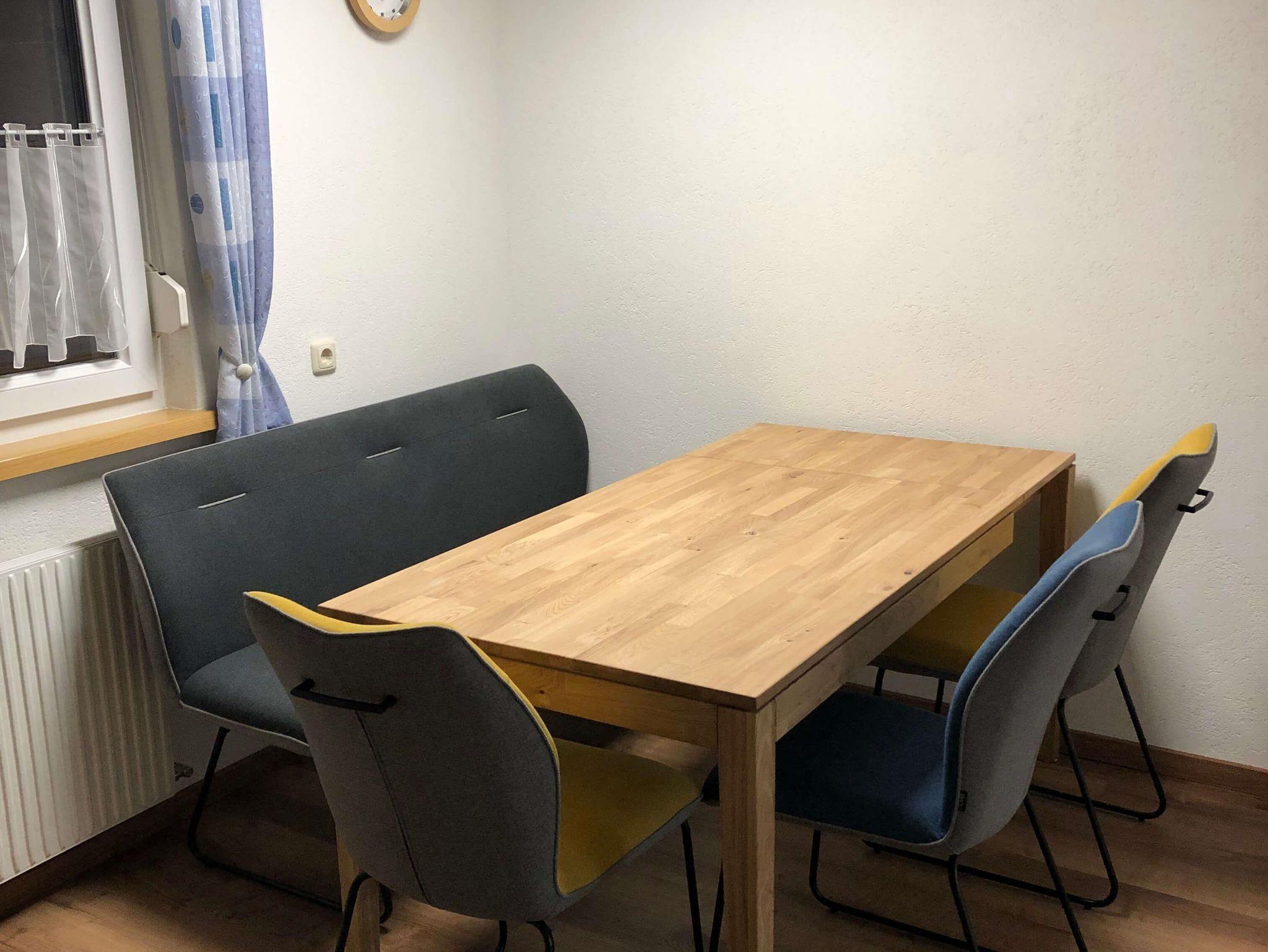 Die „frainerei“ verfügt über eine großzügige Küche mit Backrohr, Spülmaschine, Kühlschrank mit Tiefkühlmöglichkeit, Kaffeemaschine und Sitzgelegenheit. Der großzügige Aufenthalts- bzw. Essraum mit TV für 10 Personen bietet sich für ein feines gemeinsames Abendessen und unvergessliche, gemütliche Spieleabende an. Dusche und WC sind im EG und OG vorhanden. Ebenso gibt es eine Schischuhheizung im EG.
