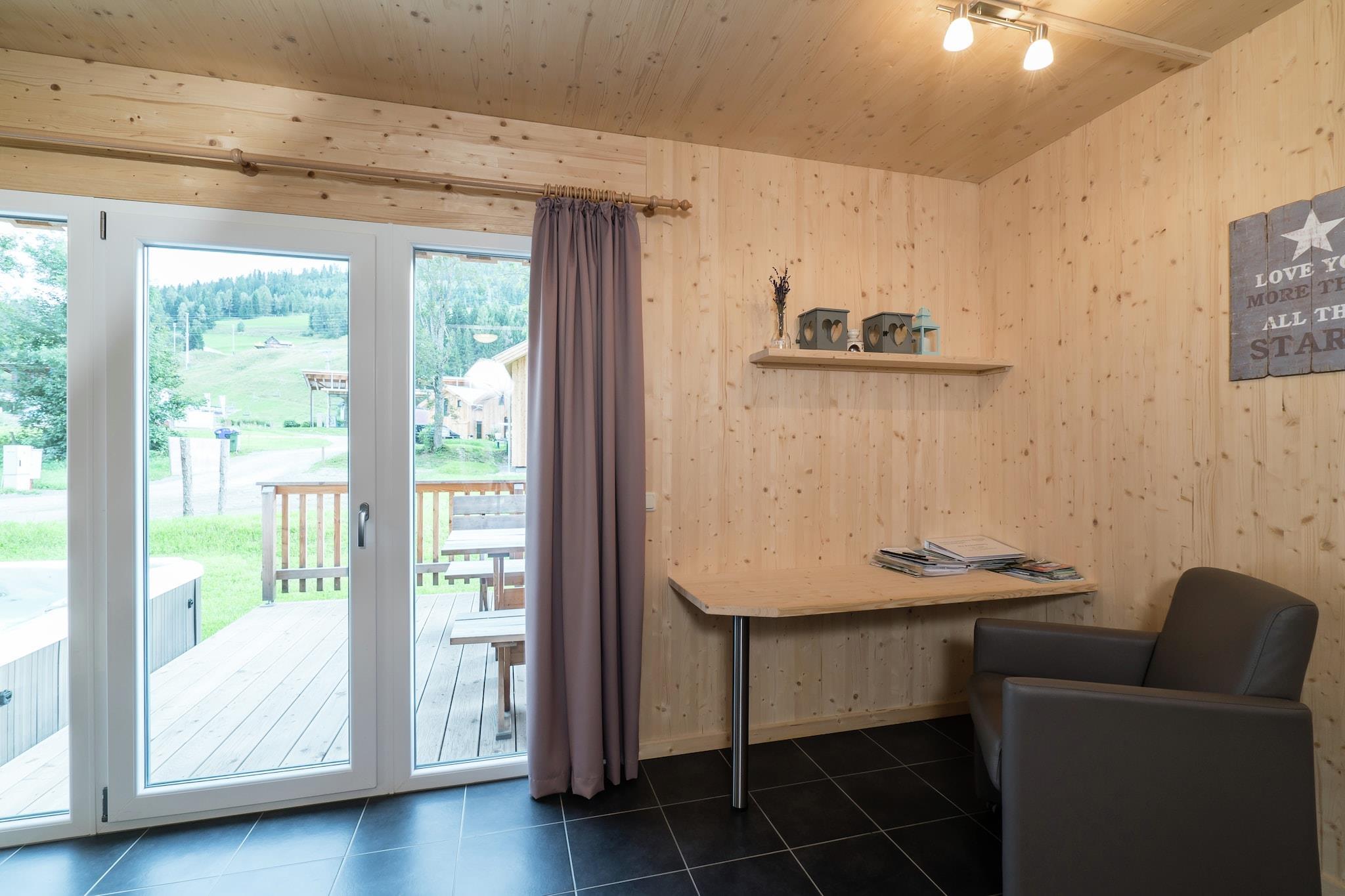 "Willkommen in Ihrem alpinen Rückzugsort in unserem exklusiven 100 m² großen Chalet, das für Komfort und Stil für bis zu 10 Gäste konzipiert ist. Dieses charmante Ferienhaus verfügt über einen privaten Whirlpool für ultimative Entspannung nach einem Tag voller Abenteuer. Das Chalet bietet drei gemütliche Schlafzimmer mit Doppelbetten und ein zusätzliches Schlafzimmer mit zwei Etagenbetten und ist somit ideal für größere Familien oder Gruppen. Die beiden modernen Badezimmer bieten entweder eine erfrischende Dusche oder einen wohltuenden Whirlpool im Innenbereich, Haartrockner stehen bequem zur Verfügung. Der geräumige Wohn-Essbereich ist perfekt zum Beisammensein und verfügt über eine gemütliche Sitzgelegenheit und einen Flachbildfernseher für Ihre Unterhaltung. Unsere Kreischberg Chalets befinden sich in St. Georgen ob Murau, Murau-Murtal, Steiermark, und bieten eine erstklassige Lage nur wenige Schritte von der Kreischberg-Talstation entfernt, sodass Sie bequem Skifahren und Outdoor-Aktivitäten unternehmen können. Ihr Aufenthalt beinhaltet auch die Murau-Murtal-Gästekarte (Sommer), die zusätzliche lokale Vorteile bietet. Erleben Sie die perfekte Mischung aus Komfort und Abenteuer in unserem entzückenden alpinen Chalet. Bereiten Sie Ihre Lieblingsgerichte in der voll ausgestatteten offenen Küche zu, die über ein Cerankochfeld, einen Backofen, einen Geschirrspüler und einen Kühlschrank mit Gefrierfach verfügt. Wichtiges Kochgeschirr, Besteck, ein Toaster, ein Wasserkocher und eine Kaffeemaschine sind ebenfalls vorhanden. Um eine reibungslose Ankunft zu gewährleisten, erwartet Sie ein kleines Starterset mit Spülmaschinentabs, Spülmittel, einem Schwamm, Müllbeuteln, Reinigungsmitteln und einem Geschirrtuch. Bleiben Sie mit kostenlosem WLAN in Verbindung und genießen Sie während Ihres gesamten Aufenthalts Satellitenfernsehen.