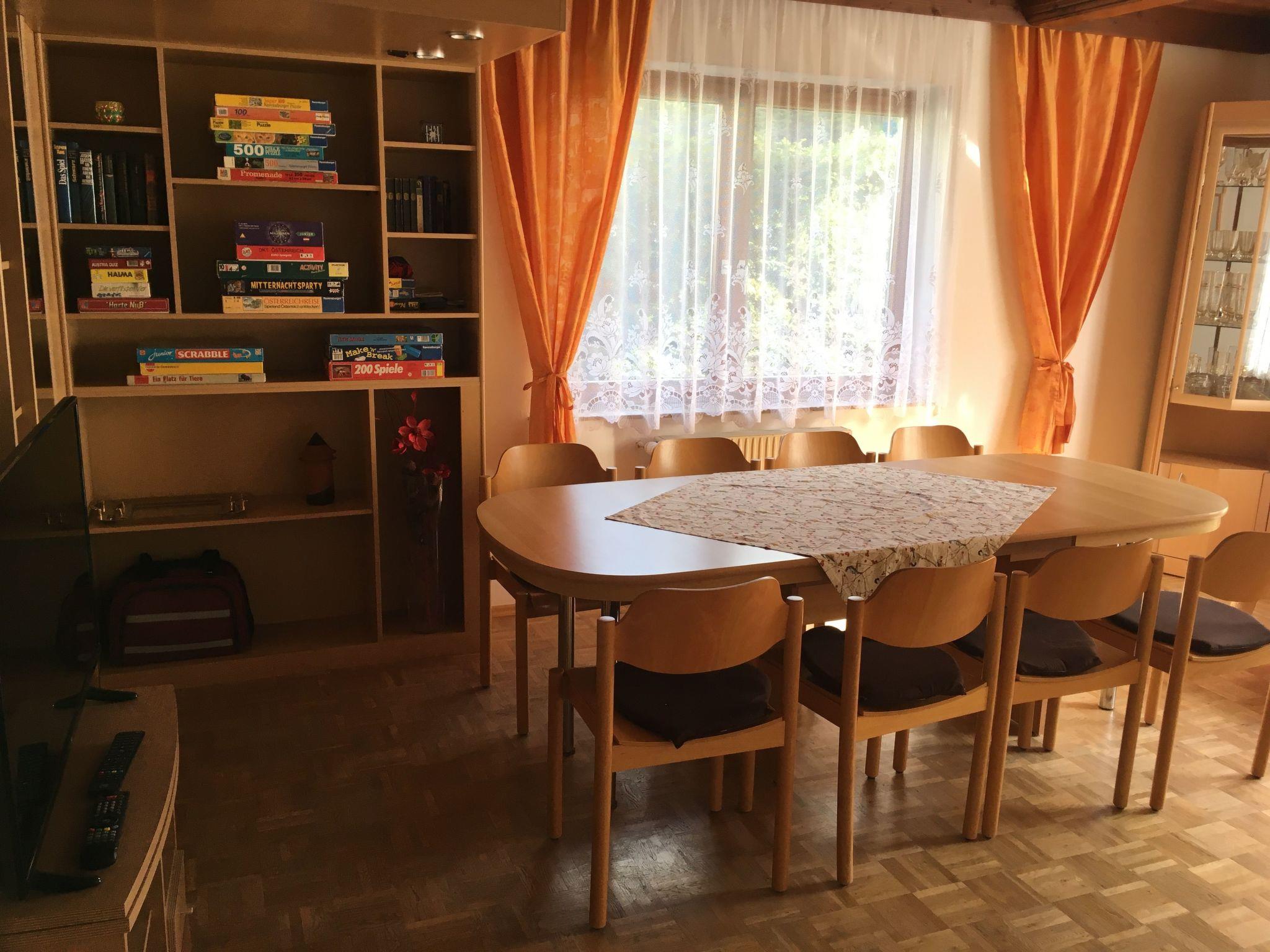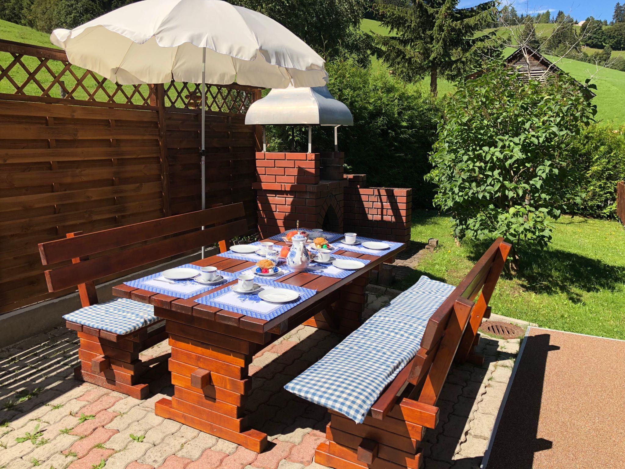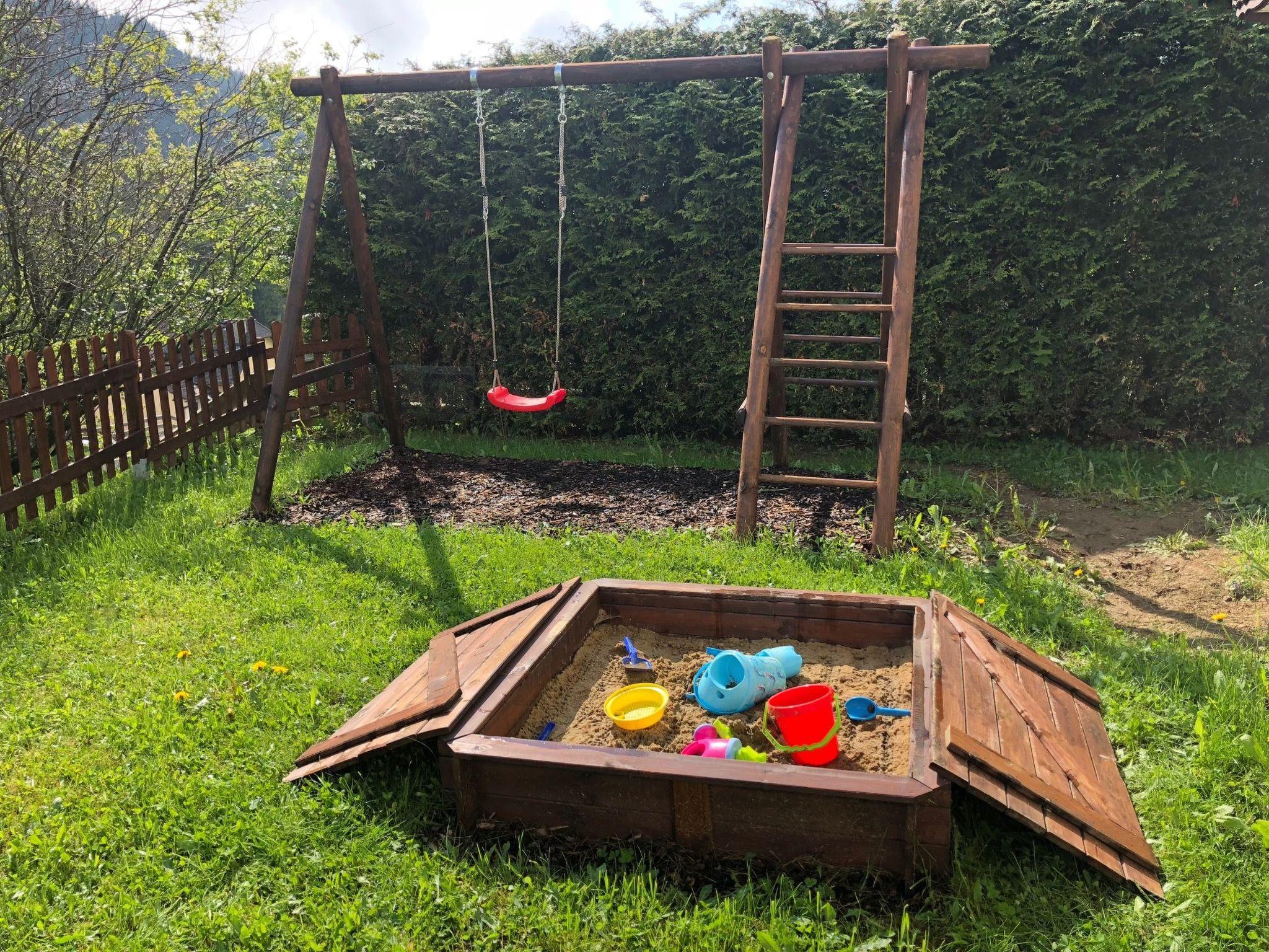 Der geräumige Garten bietet einen gemauerten Grill mit einer gemütlichen Sitzgruppe, einen kleinen Spielplatz mit Schaukel und Sandkasten und einer Sitzbank für die Eltern sowie einen eigenen Hundegarten. Gegenüber dem Hauseingang sowie unterhalb des Hauses vor der Garage ist ausreichend Platz für bis zu 5 (Im Winter 4) PKW.