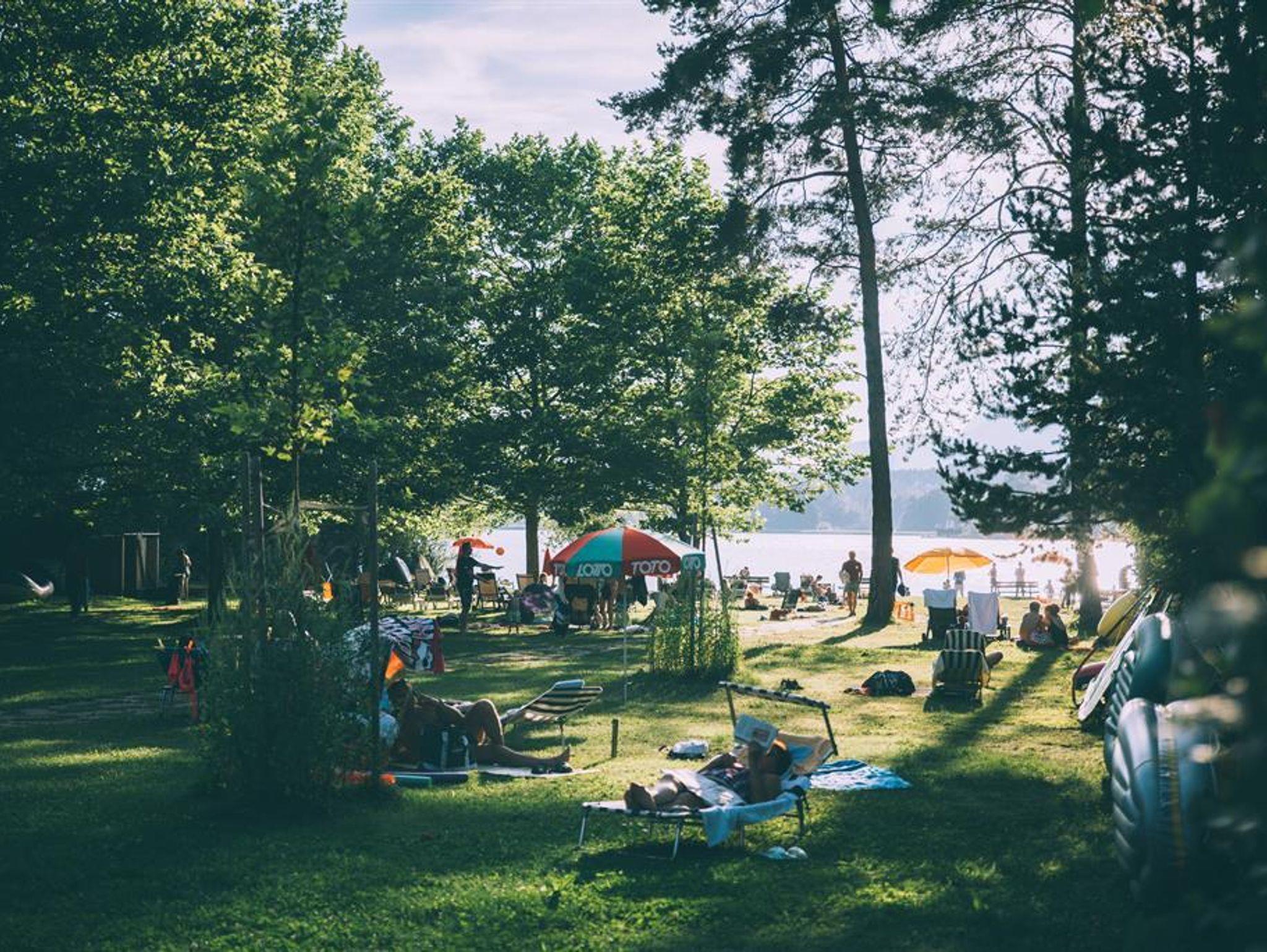 Urlaub in der Region Faaker See. Großer Privat-Badestrand mit Café und Badehaus am Faaker See inklusive (4km, 3 Min. von Privatparkplatz zu Privatparkplatz, beide kostenfrei).