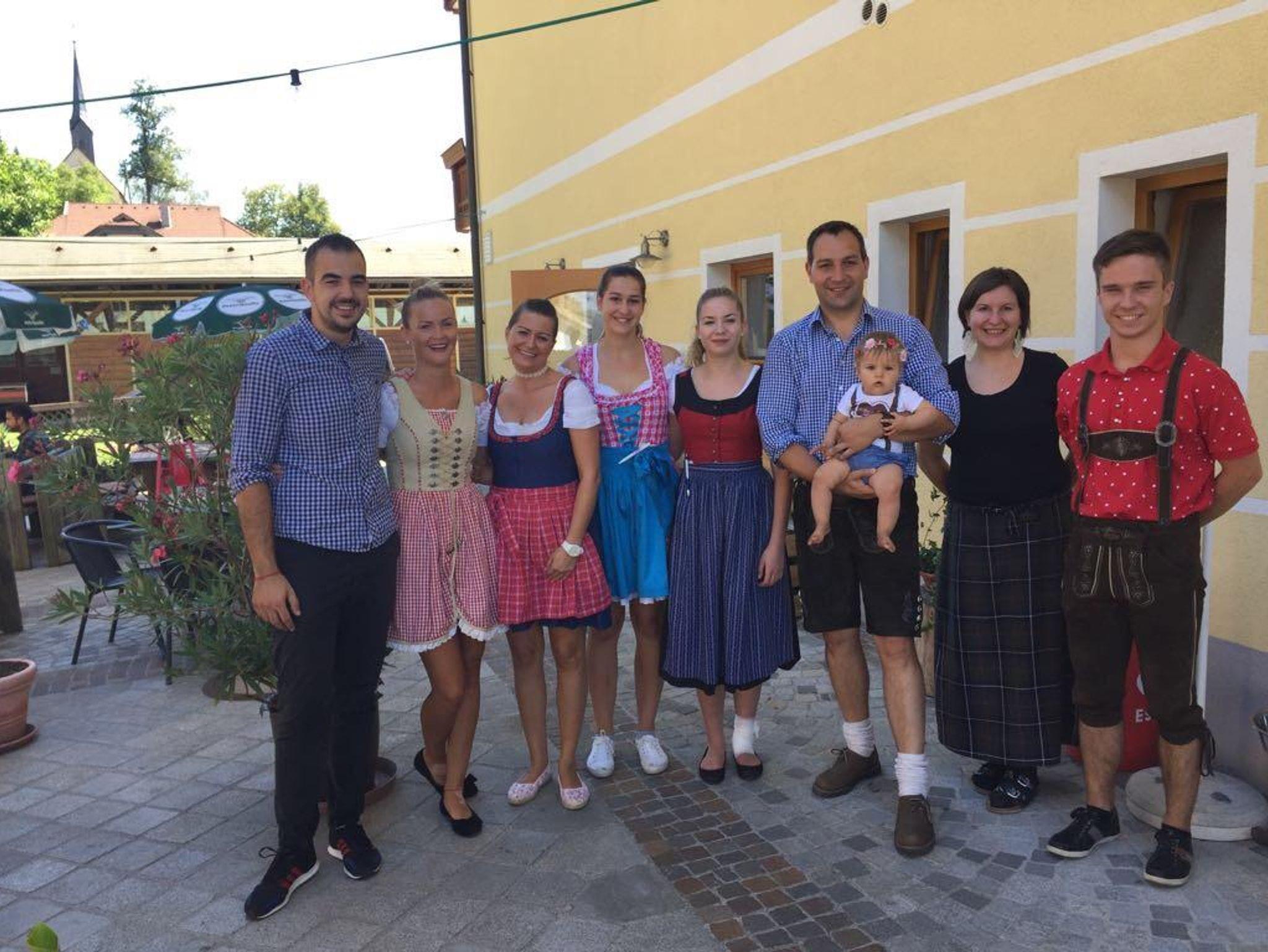 Unsere Ferienwohnung E umfasst ein gesamtes Stockwerk und verfügt über 2 separate Doppelzimmer mit Balkon, 1 Wohnschlafraum mit Ausziehcouch und großem Esstisch, SAT-TV, Balkon, 1 moderne Küche mit Backofen, Geschirrspüler und Mitkrowelle, kleine Essecke, 1 Vorraum und ein Badezimmer mit Dusche, Badewanne und WC. Am Balkon steht auch eine Sitzgelegenheit zur Verfügung. Alle Mahlzeiten werden im Gasthof eingenommen. Den Gasthof und den Spielplatz erreichen Sie auf einem beleuchteten Privatverbindungsweg (getrennt von der Straße) in nur 2-3 Gehminuten.