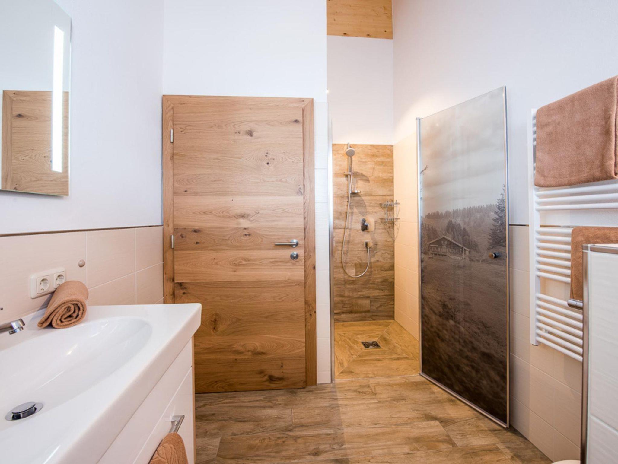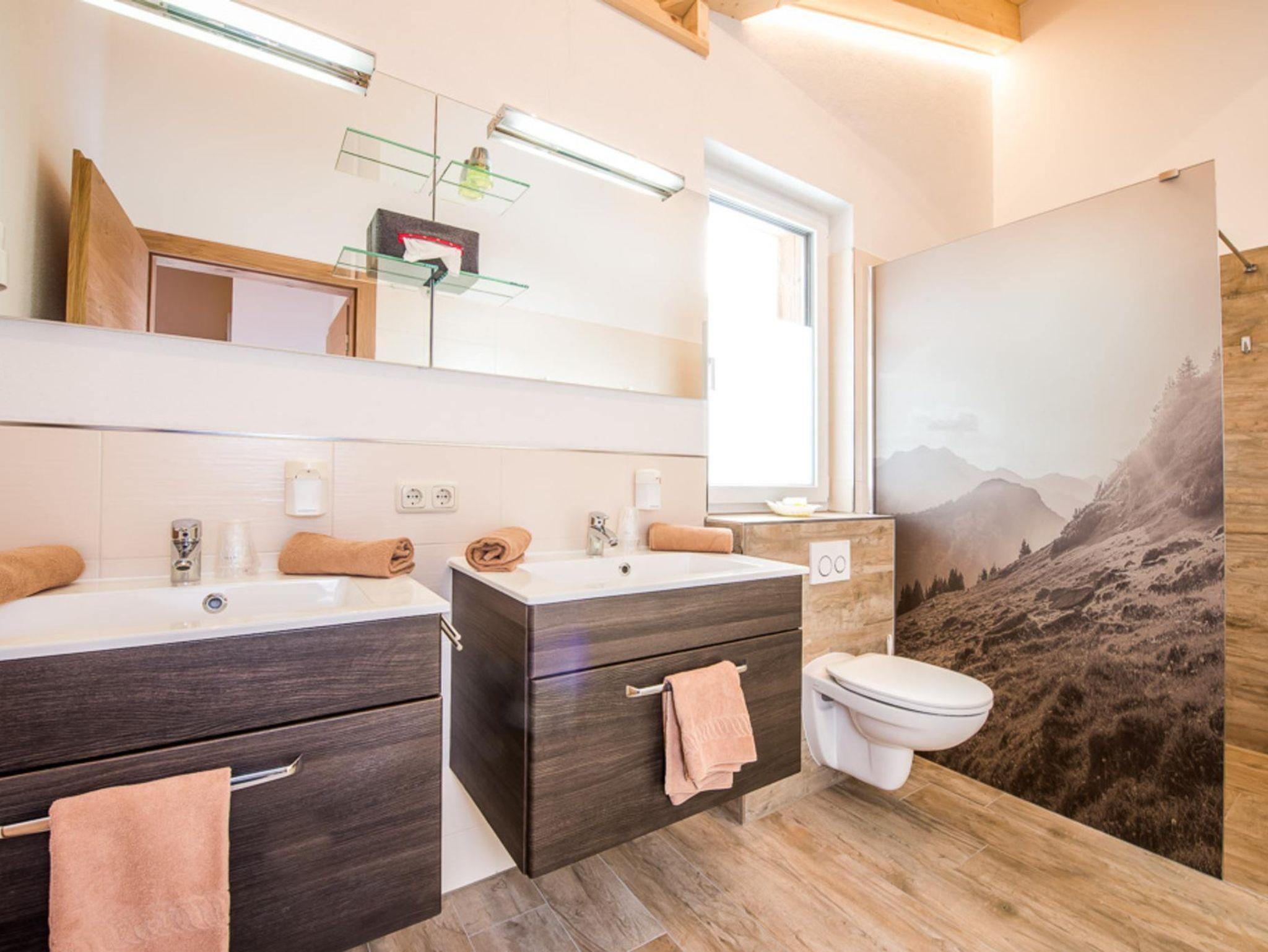 * 1 Bad mit Dusche, Doppelwaschbecken und WC, + WC