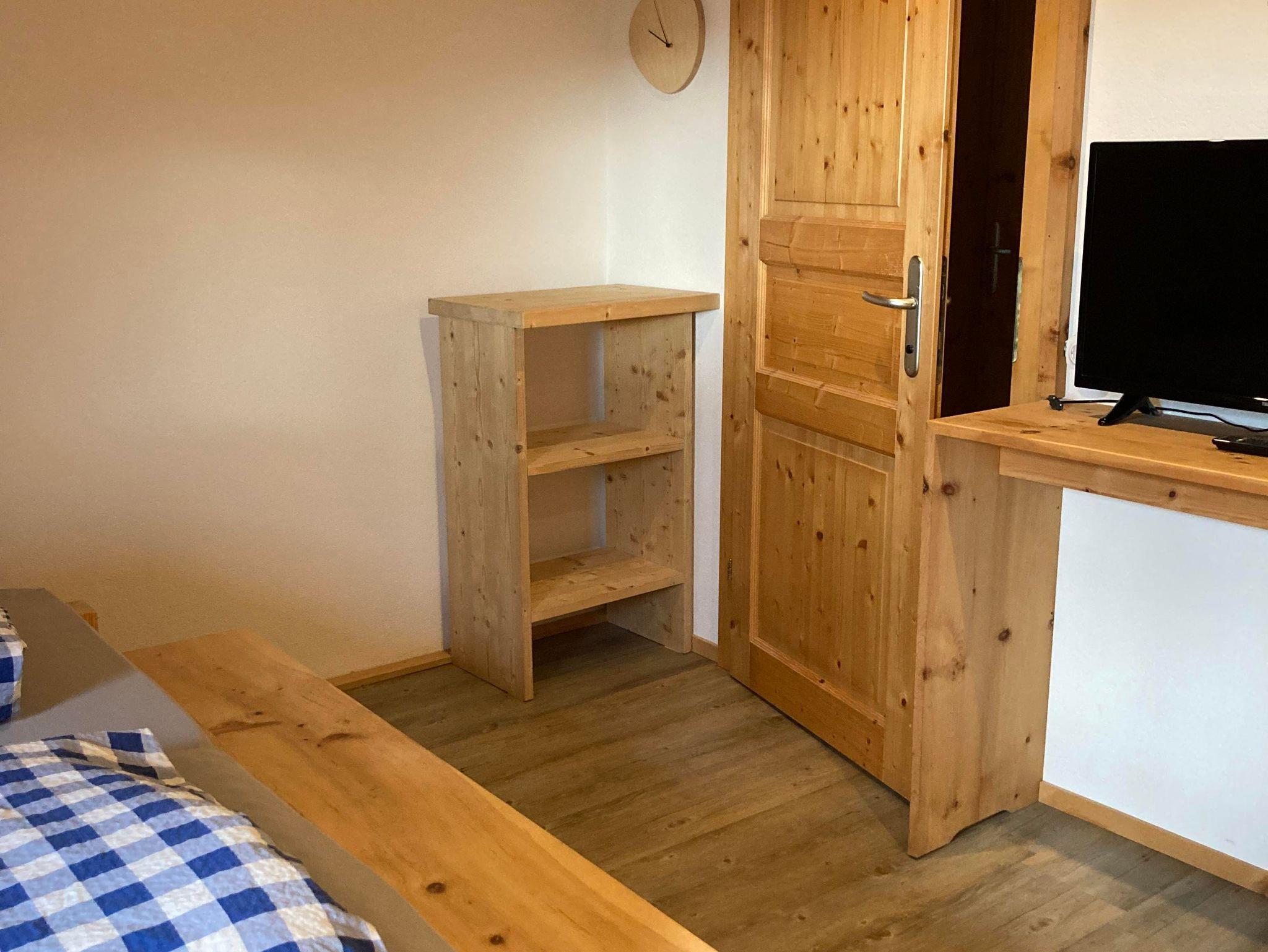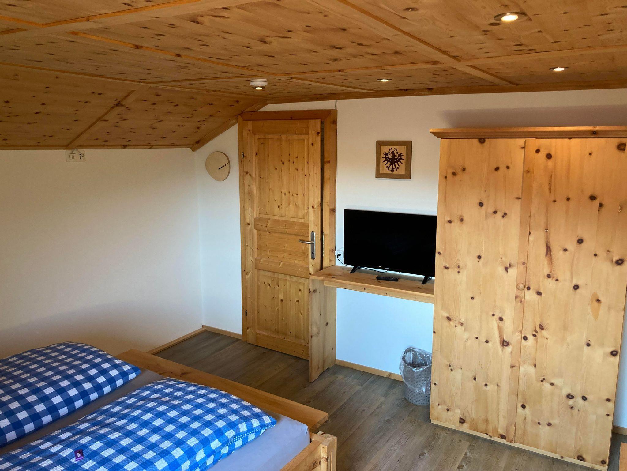 Ein liebevoll eingerichtetes Doppelzimmer, hier auch wieder mit viel Zirbenholz ausgekleidet, erinnert an eine Stube mit modernen Elementen. Bereits im Hauptflur begegnet Ihnen der gesunde Duft der Zirbe. Der Balkon liegt direkt neben Ihrem Zimmer. Das Doppelzimmer (ca. 15 qm) hat einen Raum mit Doppelbett, Tisch und einem Schrank und ein Badezimmer mit Dusche/WC/Waschbecken. Ein Wasserkocher steht im Doppelzimmer zu Verfügung.