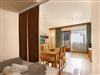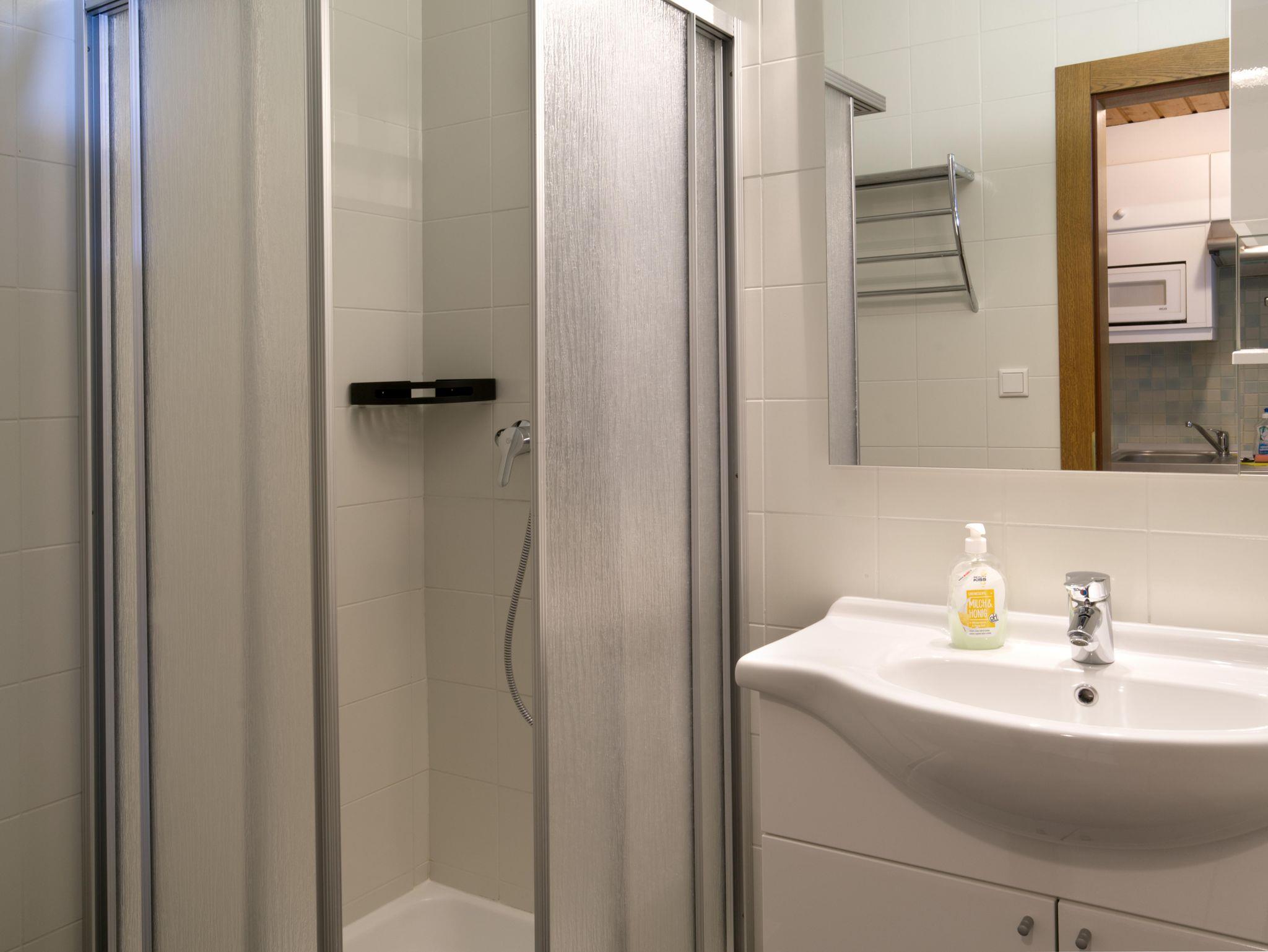 Wohnraum und Doppelbett optisch abgetrennt, Dusche und sep. WC, Küchenzeile mit Mikrowelle, Kaffeemaschine und Toaster, Gefrierfach-Kühlschrank, Bettwäsche, Handtücher