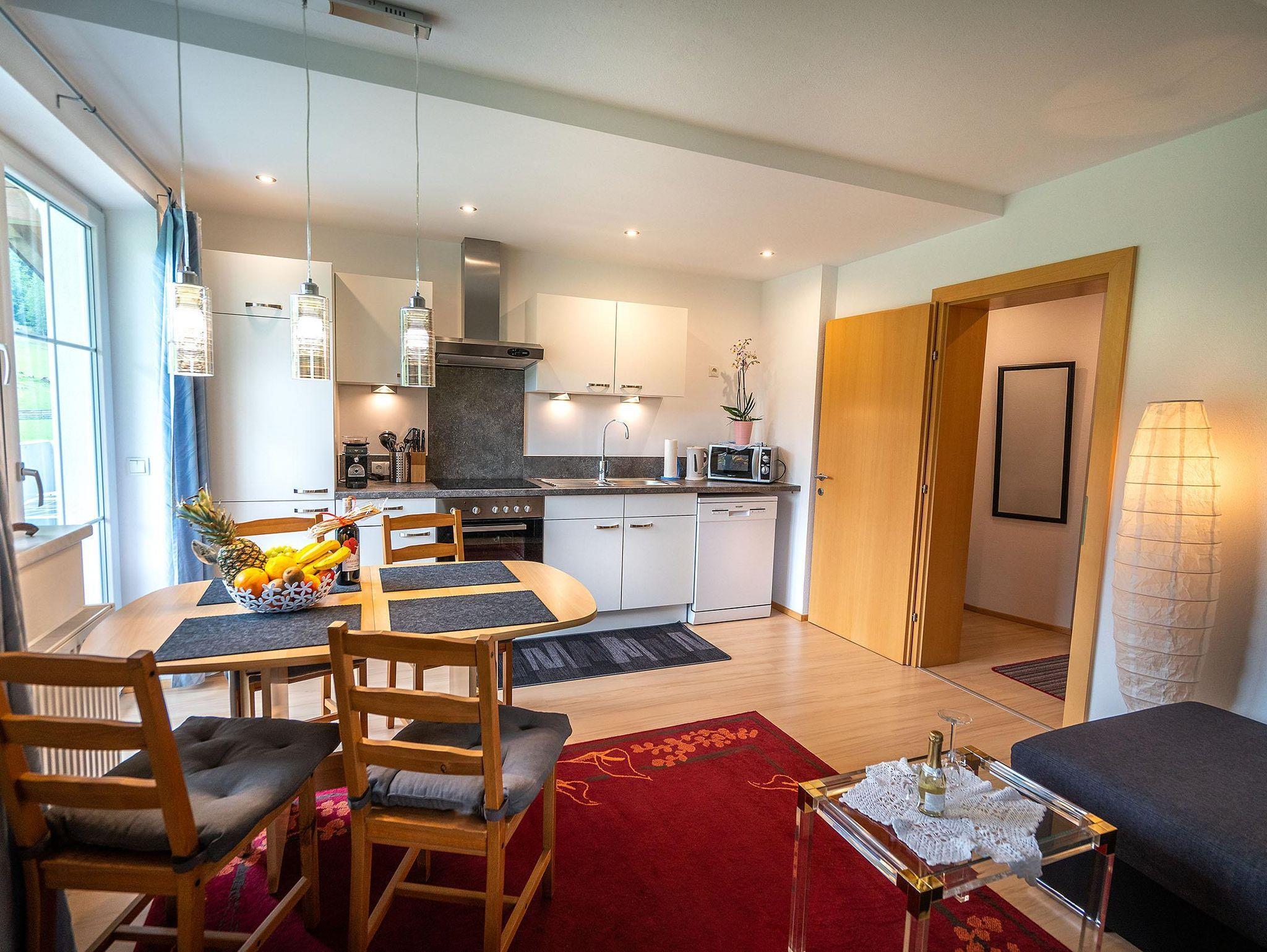 2-Raum App., Wohnraum mit Sat/TV, CD-Radio,gemütliche Sitzecke, Küchenzeile mit Kühlschrank, Kapsel-Kaffeemaschine, Wasserkocher, Mixer und Mikrowelle. Schlafzimmer mit Safe, Bad/WC, Fön, Bademantel, Kosmetikspiegel, Handtuchhalter, Das App. ist im Landhausstil eingerichtet.